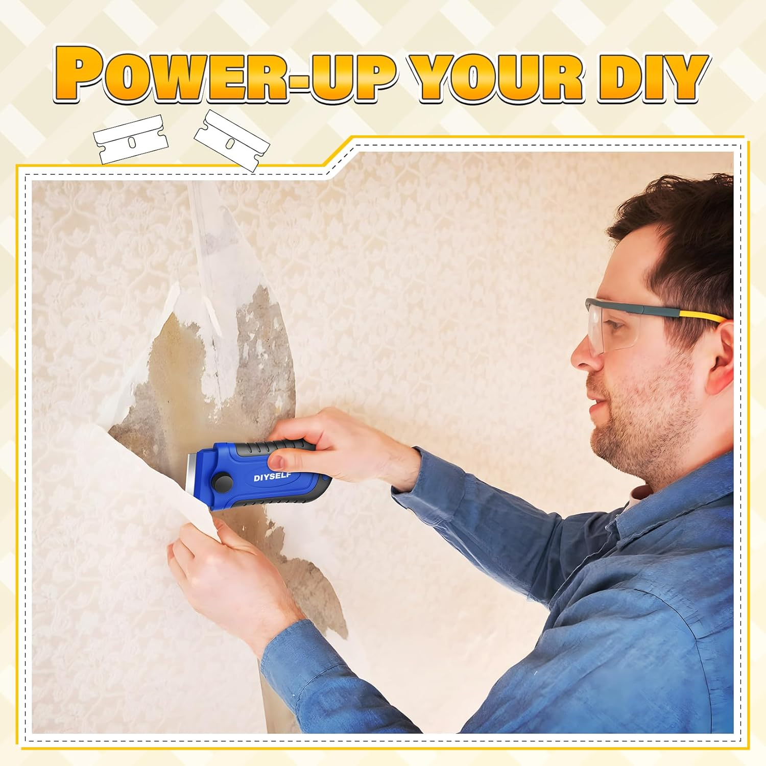 DIYSELF 2 Pack Razor Blade Scraper with 30 Pcs Extra Blades, Scraper Tool for Cleaning, Glass, Stickers, Paint Scraper, Razor Scraper, Glass Scraper, Razor Scraper Tool, Glass Stove Top Scraper