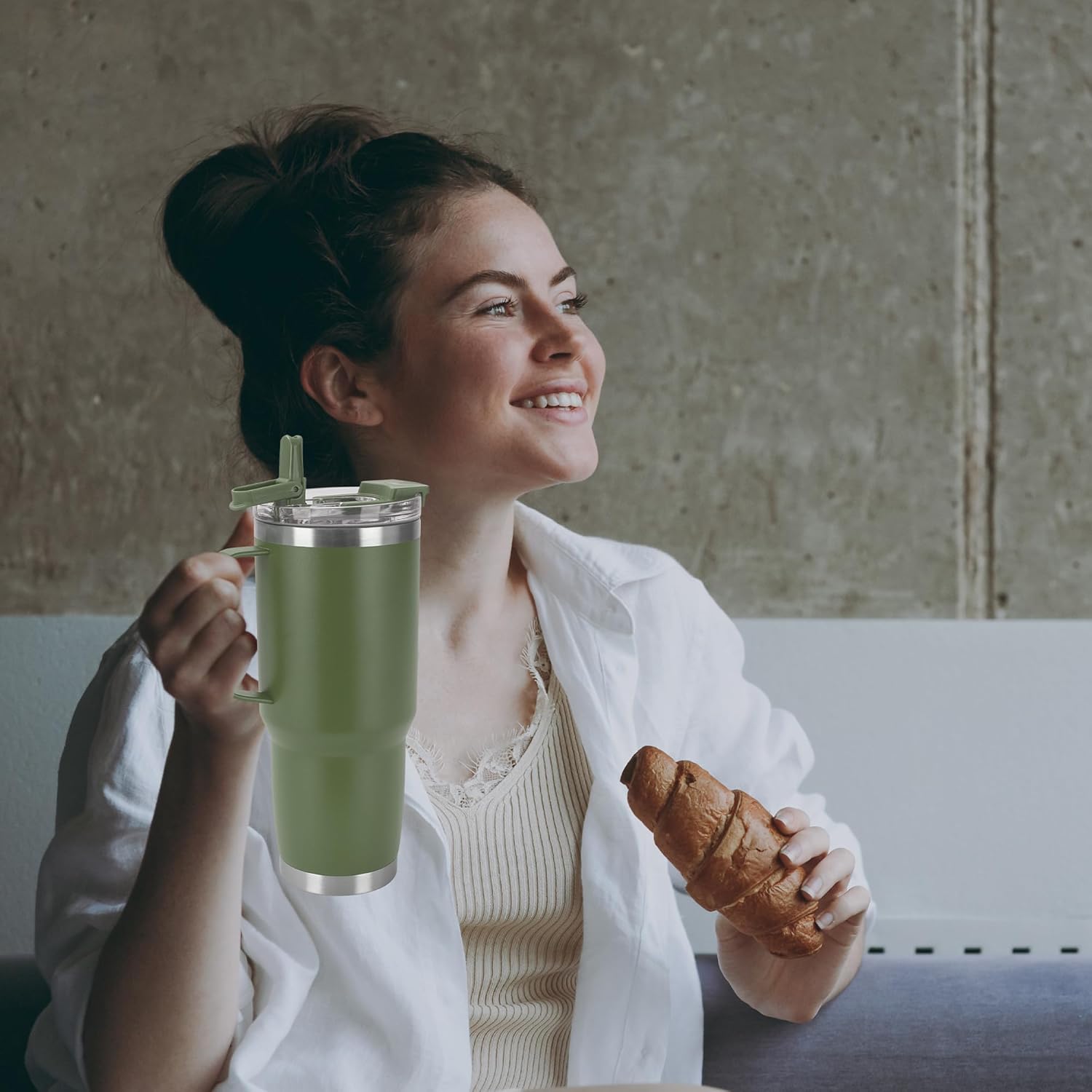 - Tumbler with handle:The welded handle provides a firm grip on your drink. It's large enough for anyone to hold easily, allowing you to carry the tumbler around and take a sip with one hand.