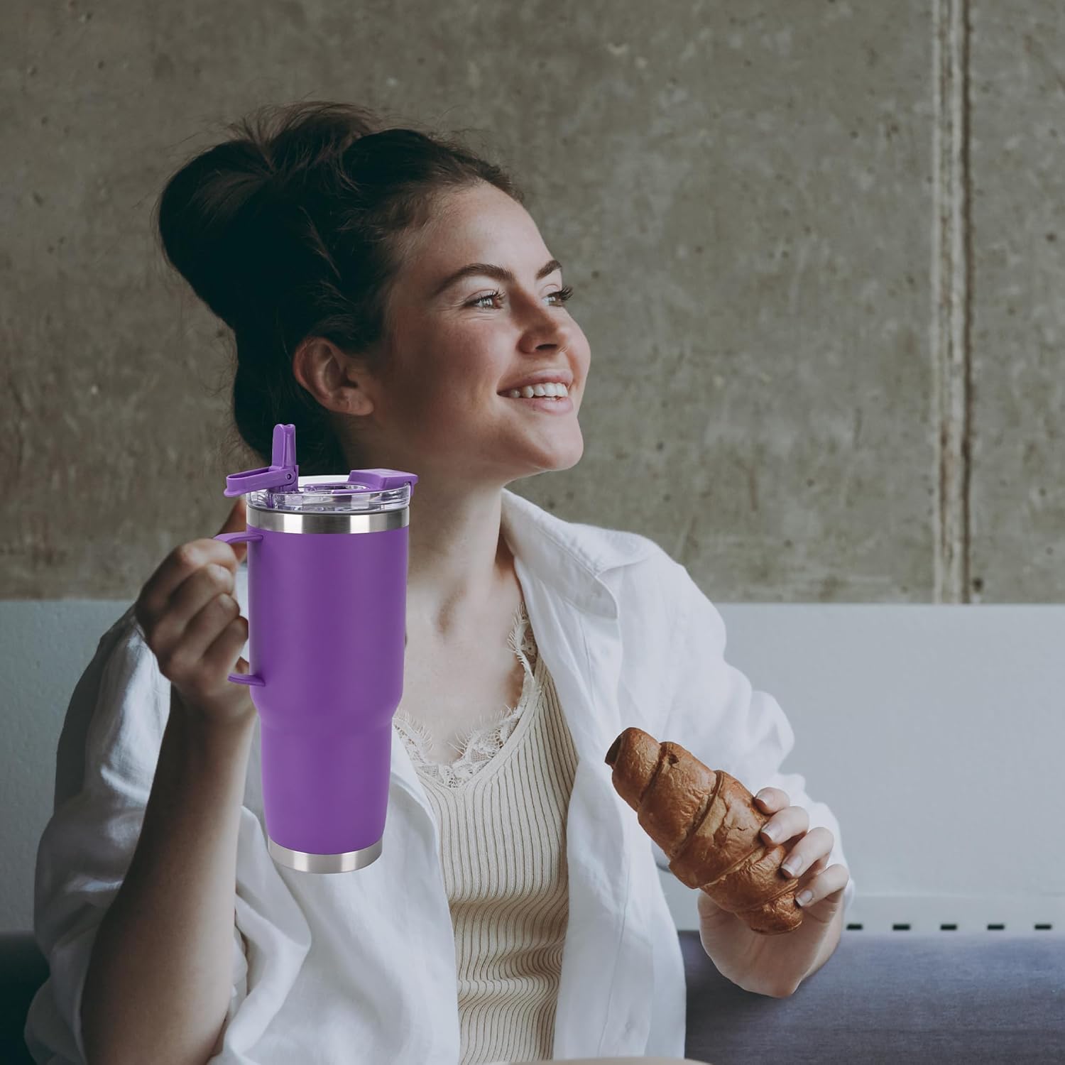 - Tumbler with handle:The welded handle provides a firm grip on your drink. It's large enough for anyone to hold easily, allowing you to carry the tumbler around and take a sip with one hand.