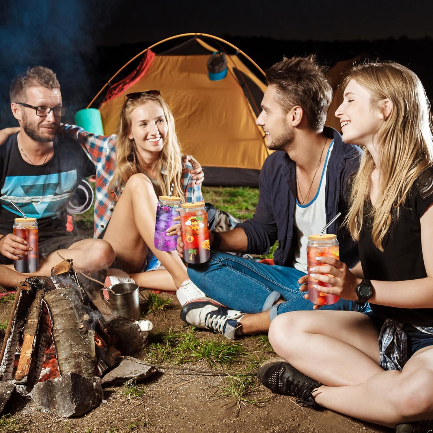 - Glass Cups with Lids Set: Our glass cups beer can set includes 20pcs 20 oz glass cups, 20pcs bamboo lids and 10pcs straight+10pcs bent stainless steel straws, 4pcs straw brushes, 1pc sponge brush and 1pc DIY stickers.The glass cup with straws kit is easy to clean