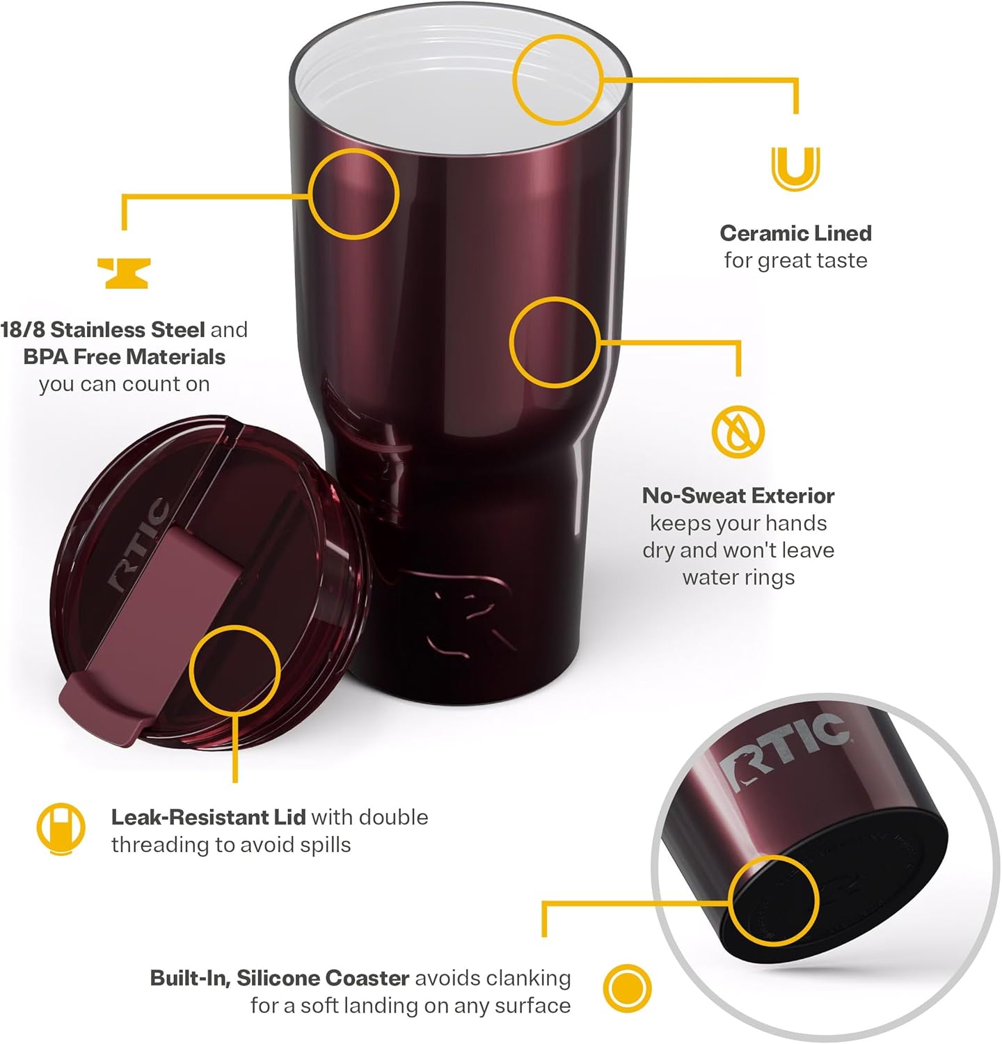 - DURABLE STAINLESS STEEL CONSTRUCTION: Crafted from 18/8 stainless steel and BPA-free materials, this tumbler cup is built to last; its durable design is RTIC tough, providing reliability and quality you can count on