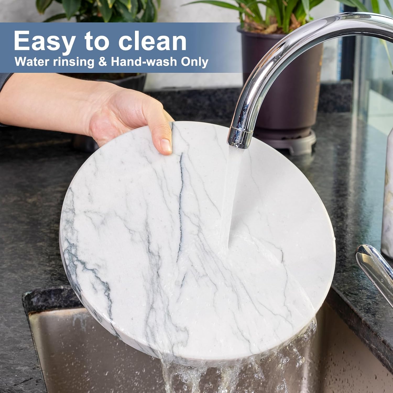 Koville White Marble Cutting Board Cheese Boards for Kitchen Countertop, Large Round Marble Charcuterie Board Pastry Boards for Kitchen Decor, Stone Tray Stone Slab for Home Decor