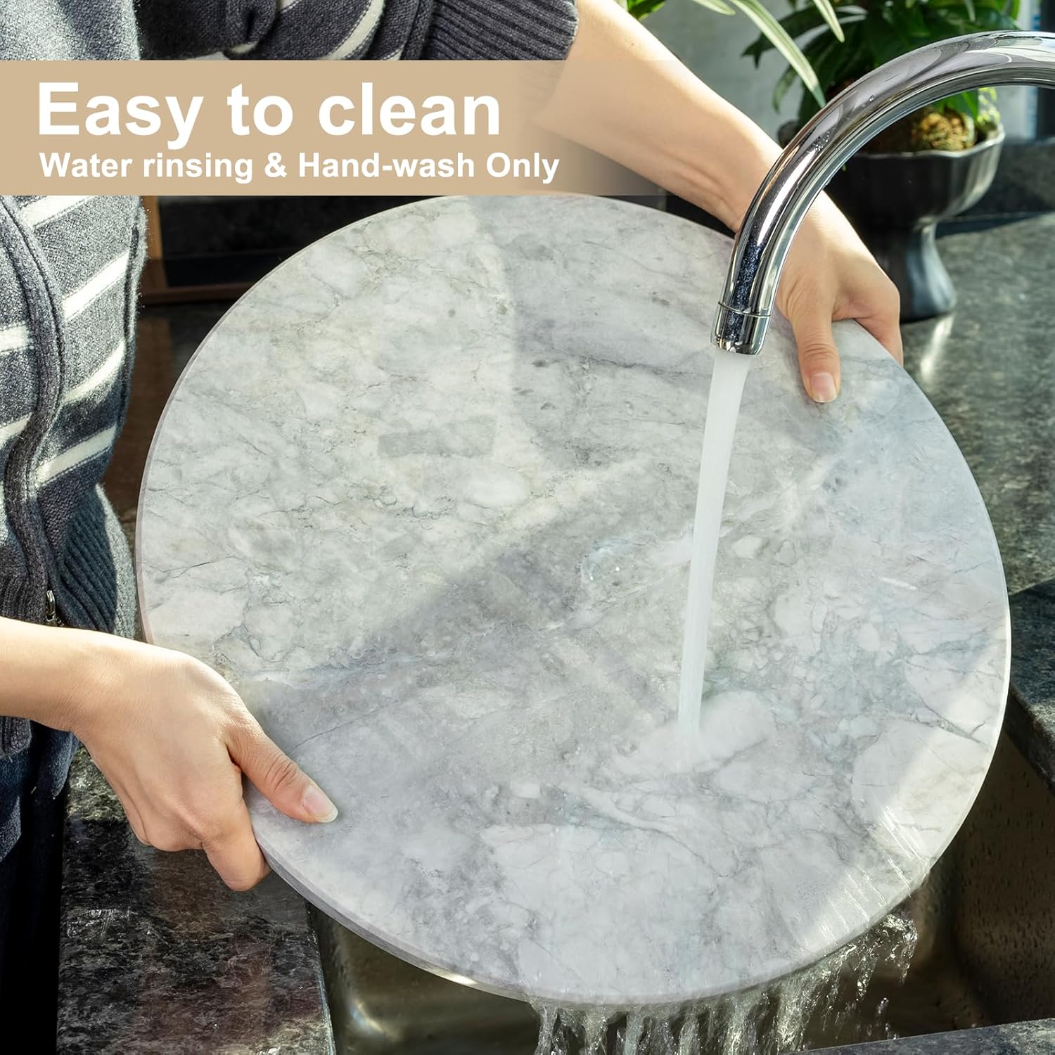 Koville Grayish White Marble Cutting Board Round, 16" Marble Cheese Board for Kitchen - Non-Stick Heat Resistant Stone Cutting Boards for Baking, Charcuterie, Pastry, Trivet