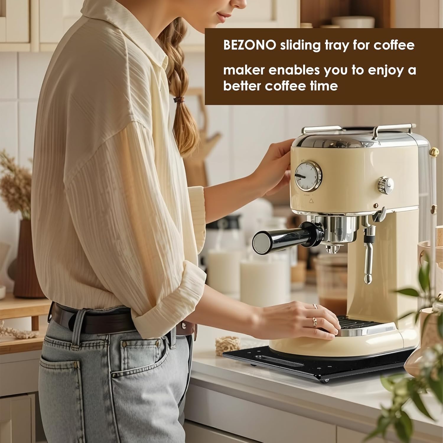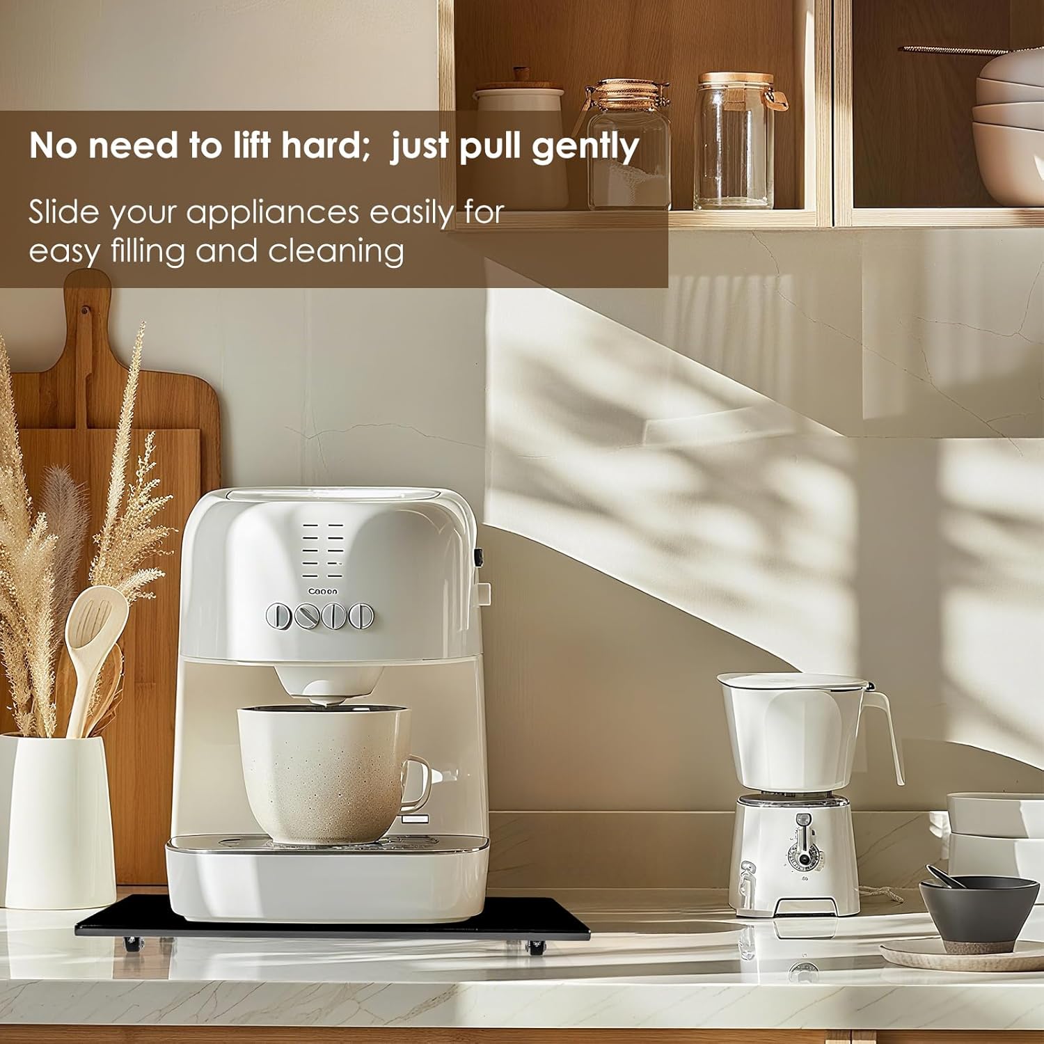- Efficient Countertop Movement: The BEZONO appliance sliders for kitchen appliances enable quick and silent countertop movement making it easy to access and organize frequently used appliances. Slide out your coffee maker or air fryer from under cabinets for refilling or use, while protecting countertops from steam damage.