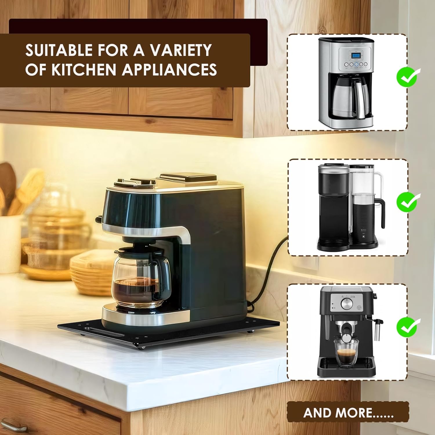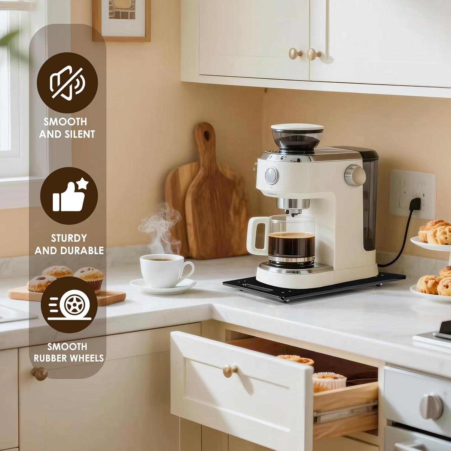 Appliance Sliders for Kitchen Appliances, Sliding Tray for Coffee Maker, Espresso Machines, Mixers Sturdy Kitchen Aid Sliders for Mixer - Duty Equipment with Rubber Wheels - 9.8" x 14" (Black)