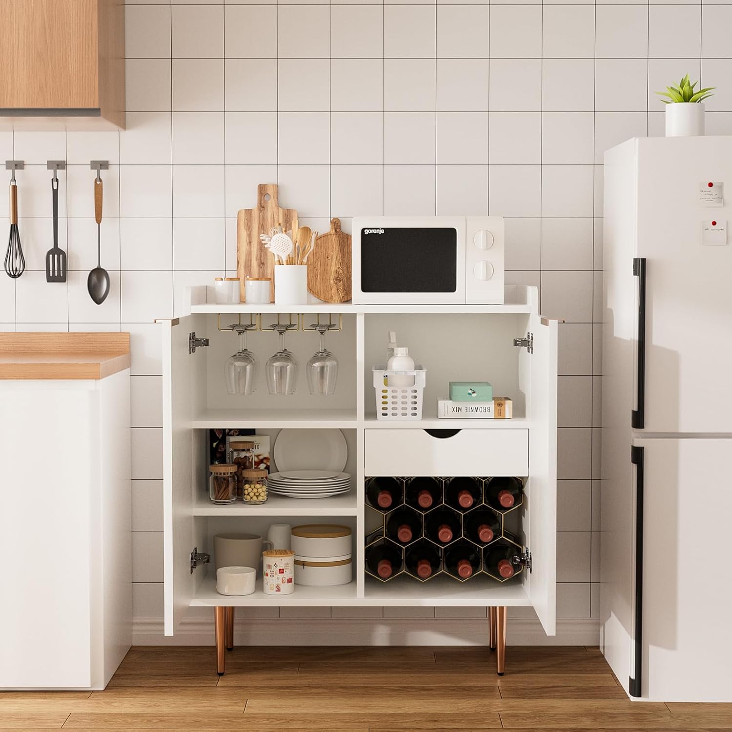 - Sturdy & Strong: Our sideboard buffet with drawer is made of durable chipboard and comes with 4 sturdy metal feet to keep the wine cooler stable for long term use; it also comes with an anti-tip device for extra safety, perfect for families with children
