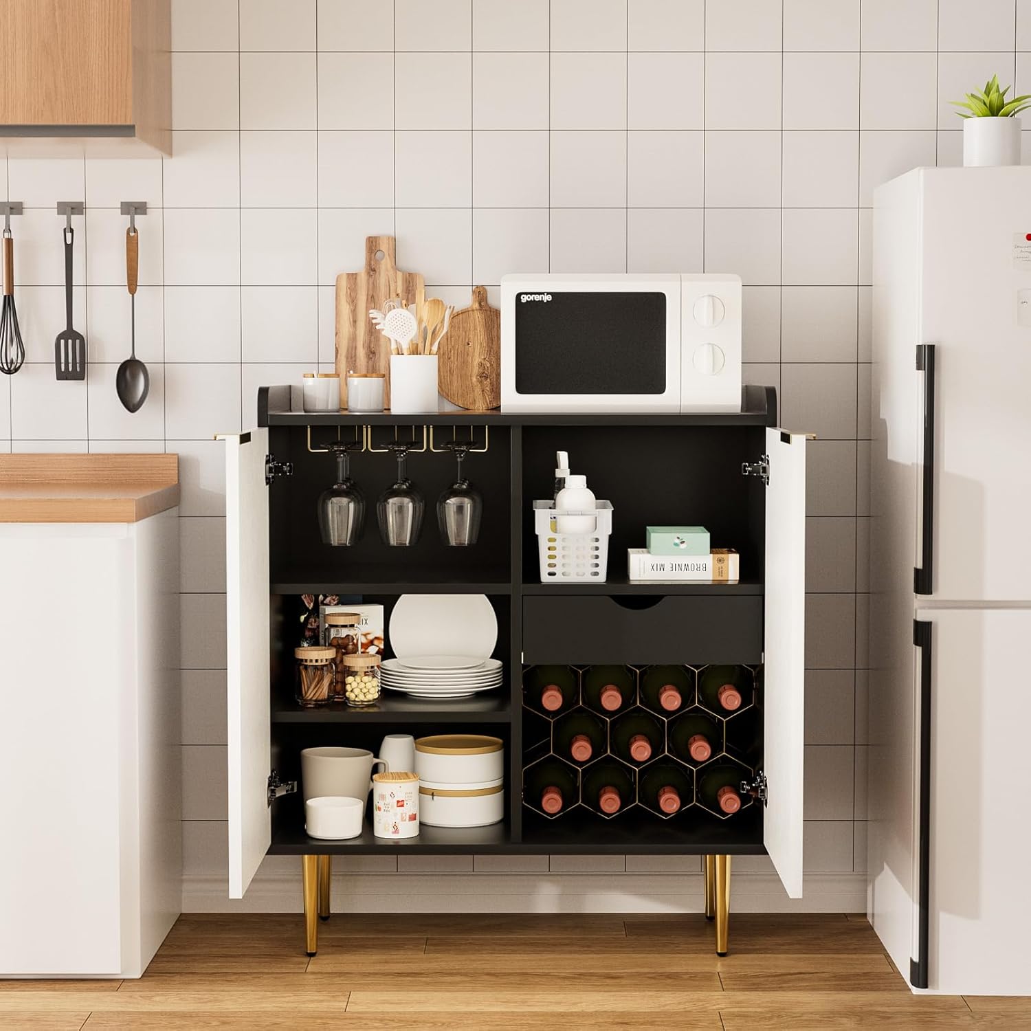 - Sturdy & Strong: Our sideboard buffet with drawer is made of durable chipboard and comes with 4 sturdy metal feet to keep the wine storage cabinet stable for long term use; it also comes with an anti-tip device for extra safety, perfect for families with children