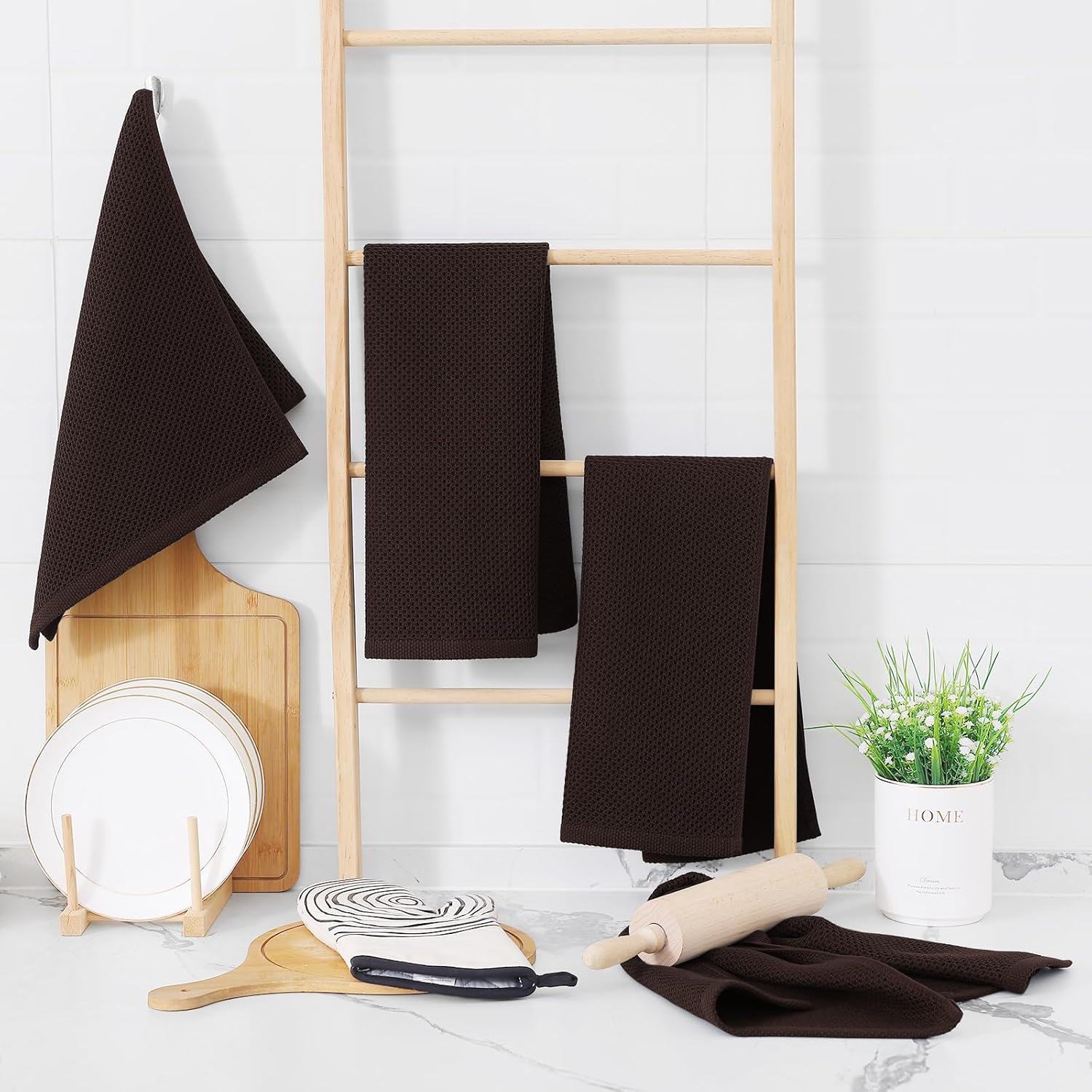 Homaxy 100% Cotton Waffle Weave Kitchen Dish Towels, Ultra Soft Absorbent Quick Drying Cleaning Towel, 13 x 28 Inches, 6-Pack, Dark Brown