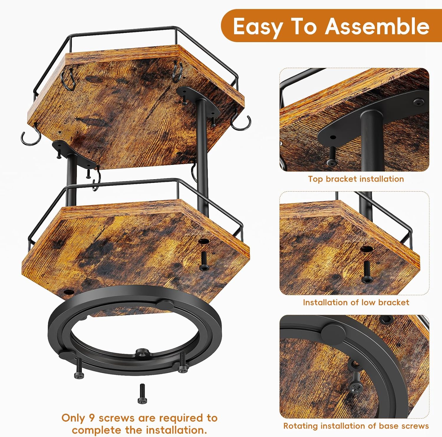 - Rotating Top Tier: The upper wooden tier rotates 360 degrees, allowing easy access to stored items from any angle.
