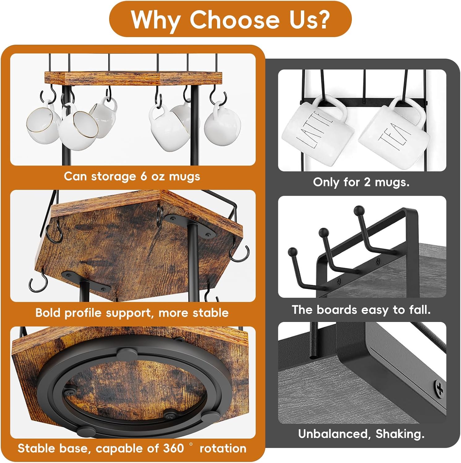 - Ample Storage: The top tier provides an open space for storing mugs, while the bottom tier offers a surface for condiments, sweeteners, or snacks.