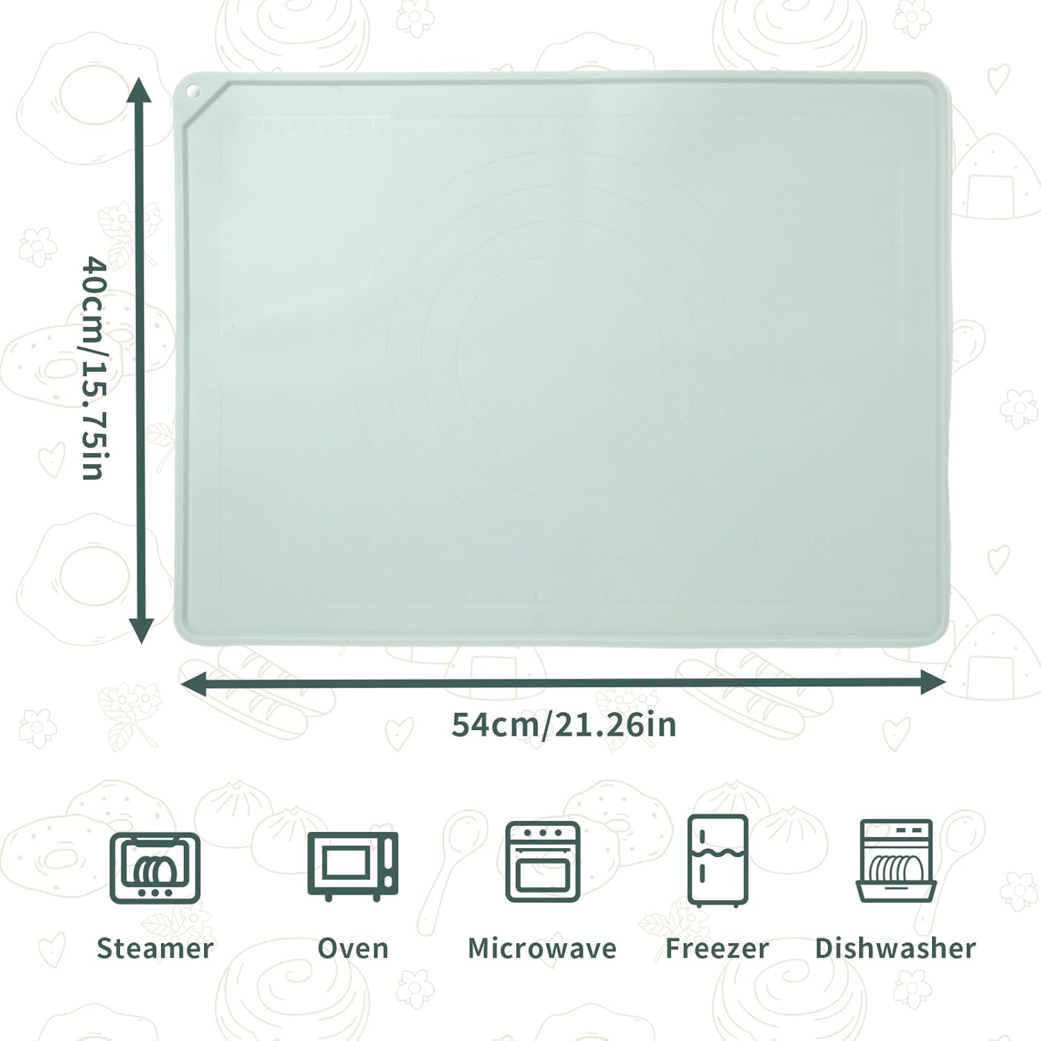 - 【Premium and Safe Silicone Baking Mat】: The extra-large baking mat is made of food-grade silicone material without vulcanizing agents. It can be reused repeatedly, being safe, soft, durable, and will neither wrinkle nor fade. This pastry mat is perfect for rolling out/kneading dough, making pizza, bread, pasta, cookies, pie crusts, biscuits, and fondant.