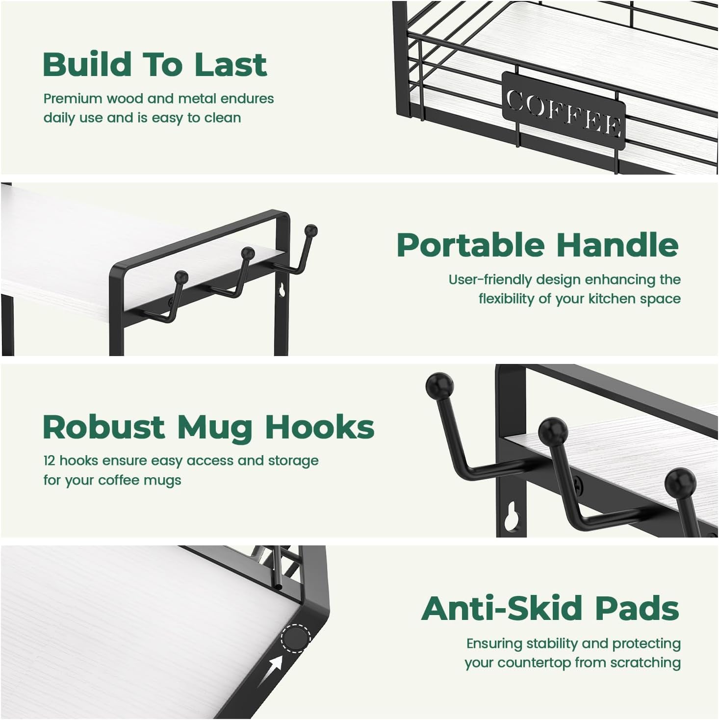 - Built to Last & Stable: Experience unmatched stability and durability with our coffee mug holder, crafted from premium materials. Designed to withstand daily use, it ensures a stable and secure setup in any kitchen, dining area, or office coffee station
