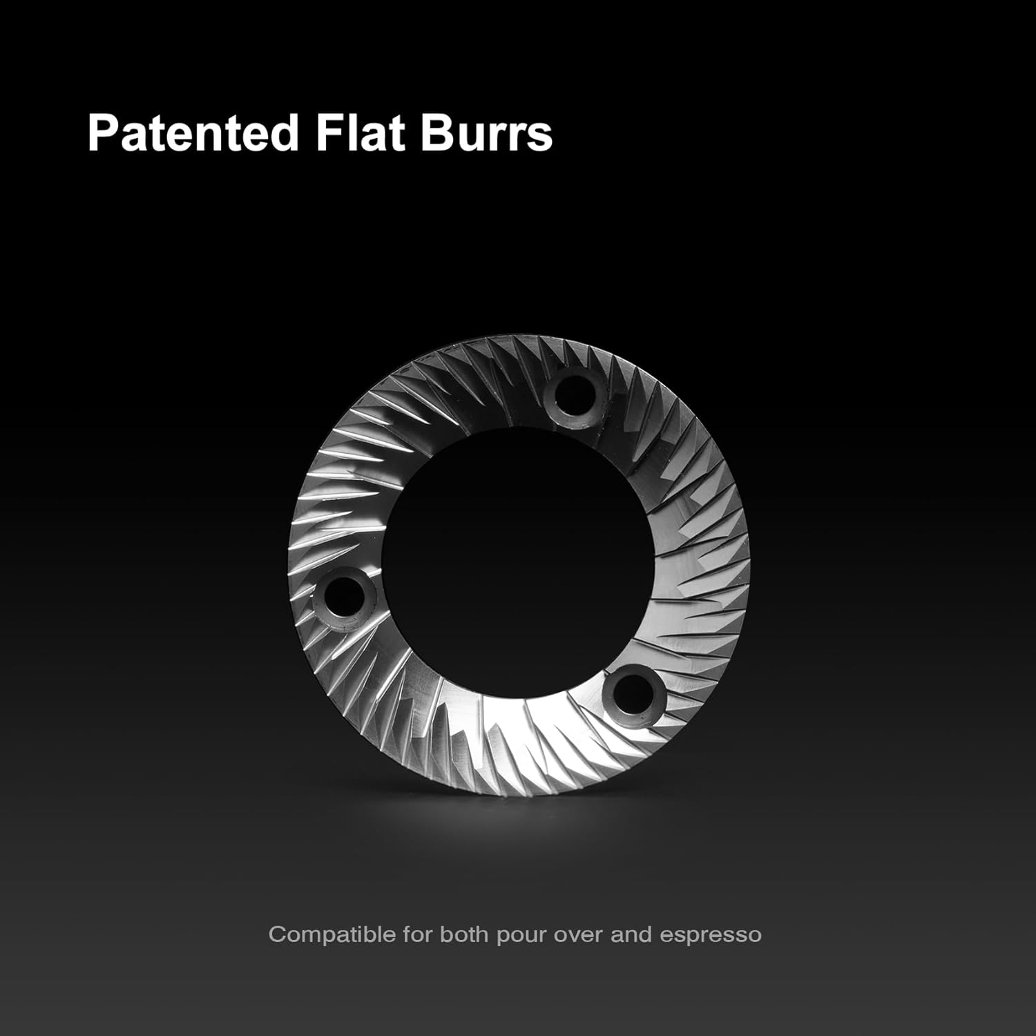 - [ Patented Flat Burrs ] TIMEMORE 064S electric coffee grinder sculptor designed for fine grinding, perfect for espresso, and delivers high uniformity, making it ideal for pour-over brewing as well.