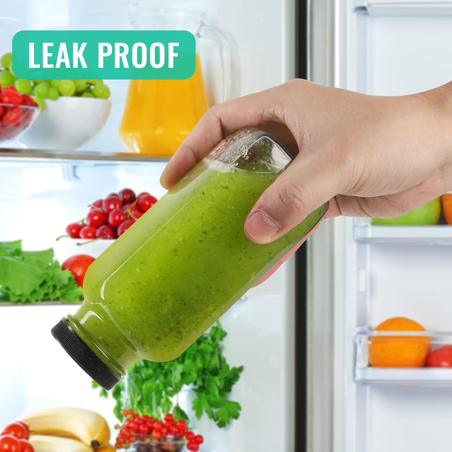 12 oz Glass Juice Bottles with Lids 3 Pack,Reusable Glass Drink Bottles,350ml Water Drinking Jars for Milk,Juicing,Kombucha,Ginger,Beverage Glassware,Juice Drinking Jars