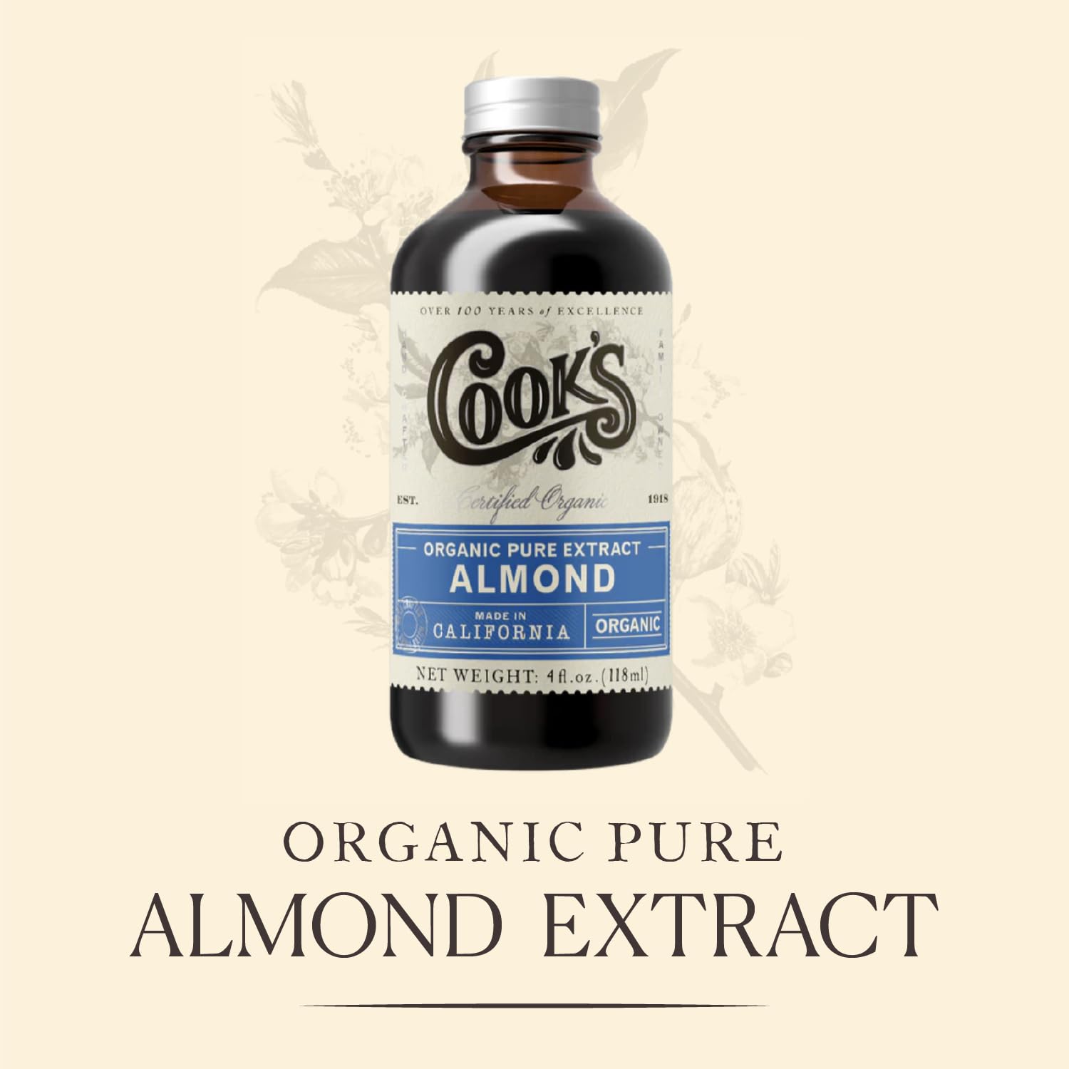 Cook's, Organic Pure Almond Extract, for Cookies, Cakes, Pastries, Allergen Free, 128 Ounces (1 Gallon)