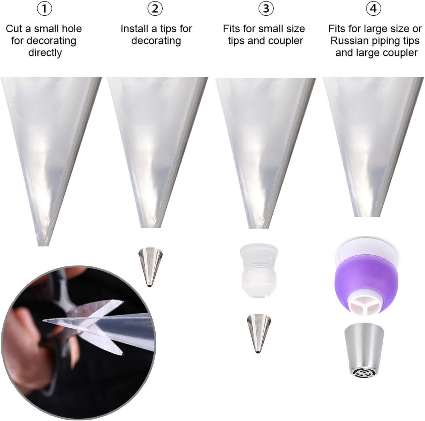 - Fits All Nozzles – Cut to Size – Use with or without piping tips. Simply snip the end to fit your preferred nozzle. These icing bags disposable are perfect for detailed work, borders, lettering, or filling pastries