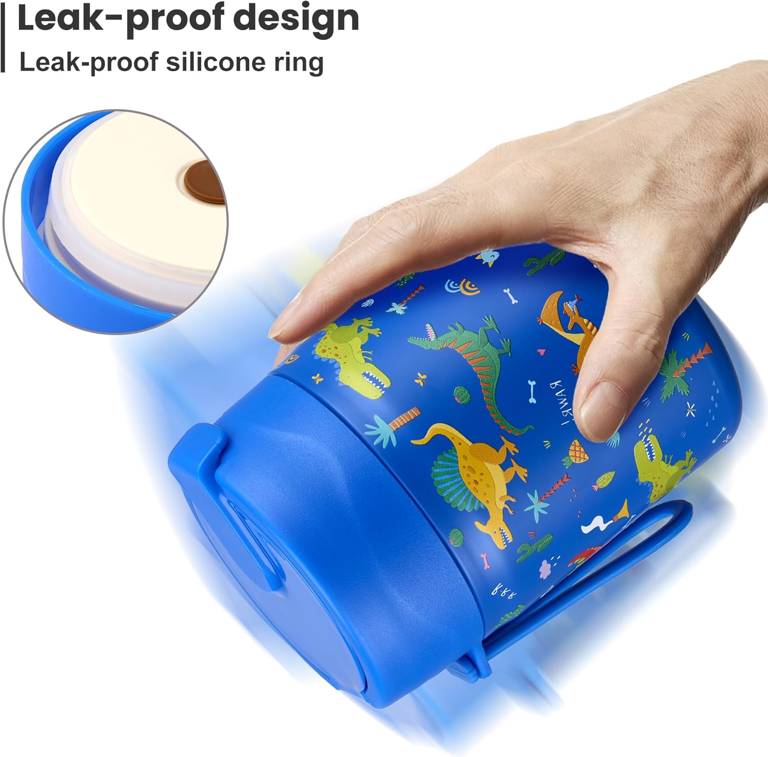 - Leak-Proof Design: Featuring an upgraded double-layer silicone seal that provides a 360° leak-proof guarantee. Rest assured that our leak-proof thermo food jar can fit in your lunch bag without worrying about spills. The insulated thermal food jar comes with a stainless steel spoon for your child's convenience.