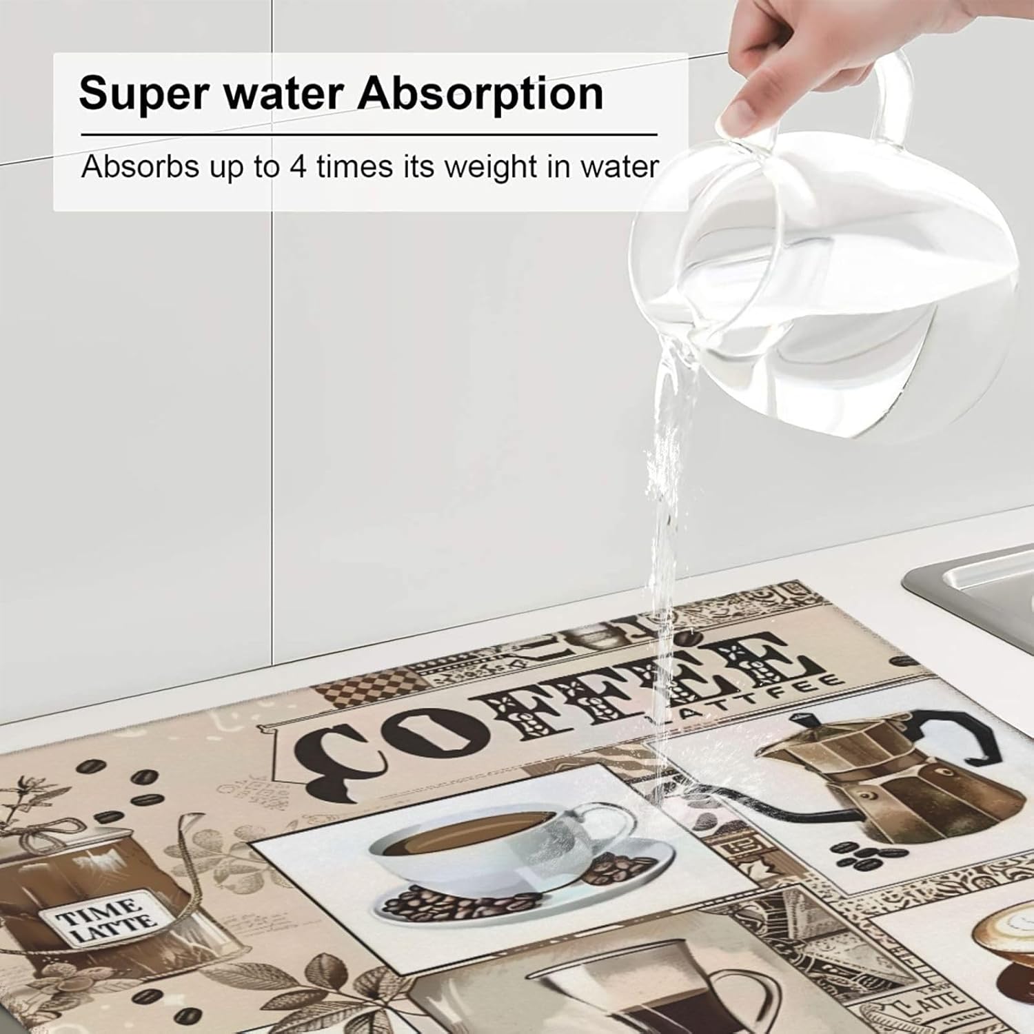 Coffee Dish Drying Mat, Highly Absorbent Microfiber Kitchen Counter Pad Reusable Washable, 16*18"