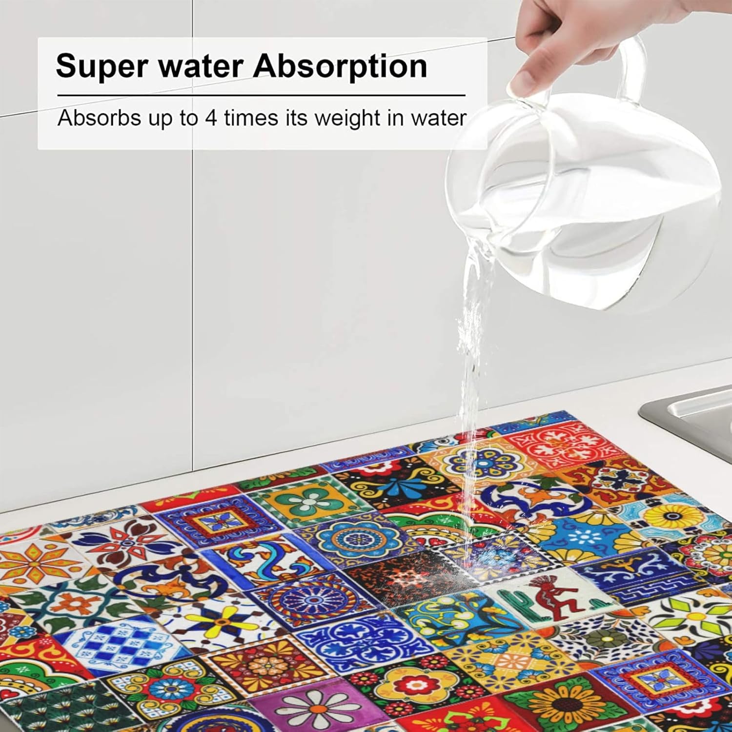 - Strongly Absorbent -- The Both Sides Of The Drying Mat Is Made Of Absorbent Ultra-Fine Fiber And The Middle Is Made Of Composite Sponge., Absorbs Four Times Its Weight In Water. Place Pots, Pans, Dishes And Glassware Directly On The Mat, It Can Also Dry Fruit After Cleaning. Our Drying Mat For Kitchen Counter Is Tear-Resistant And Long-Lasting, Offering Enduring Safeguarding For Your Tabletop