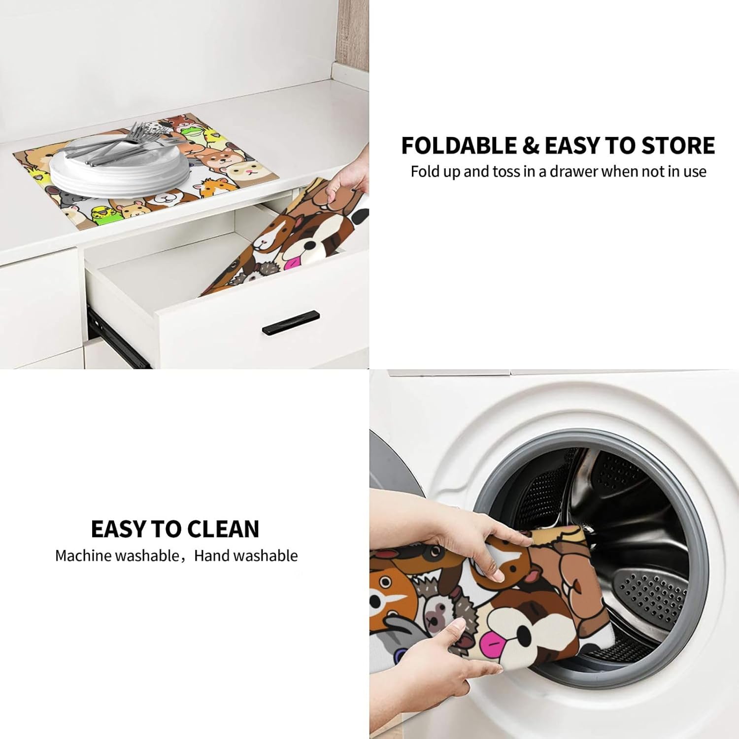 Cute Animals Pattern Dish Drying Mat, Highly Absorbent Microfiber Kitchen Counter Pad Reusable Washable, 16*18"
