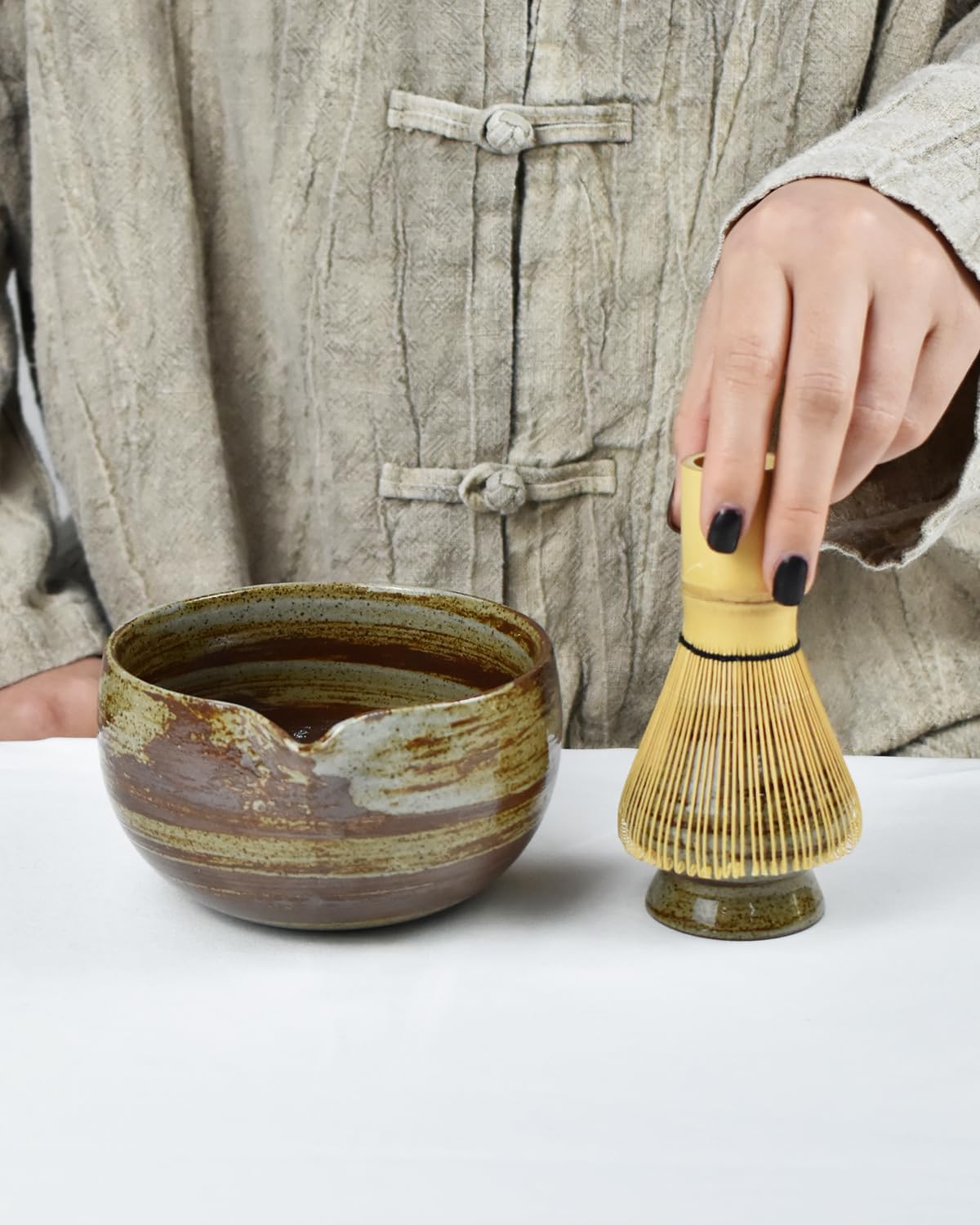 - Crafted with Premium Materials: The bowl and whisk holder are made from high-quality stoneware, while the whisk and scoop are crafted from fine bamboo, ensuring durability and a traditional matcha experience.