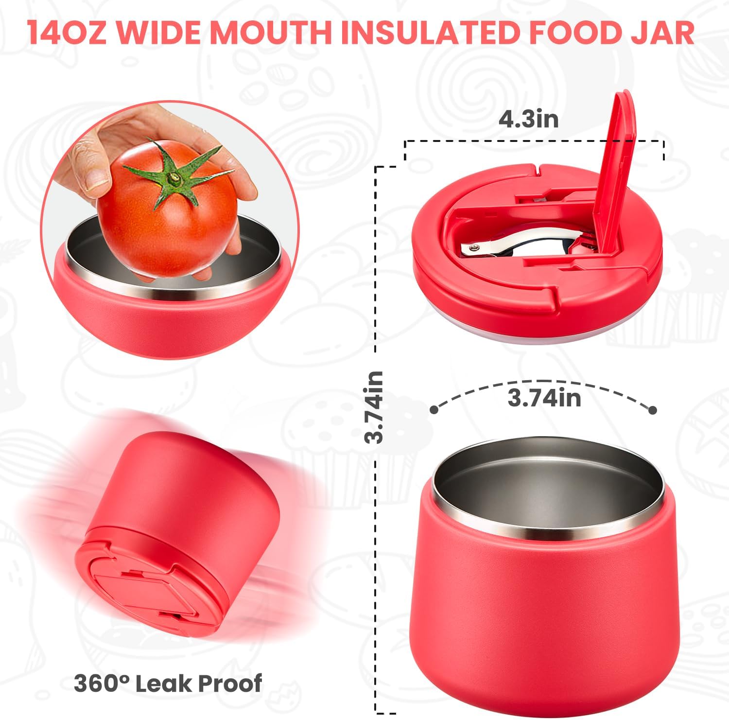 - Wide Mouth Design: 14 oz, 3.74 inches Wide mouth design allows food to fit more easily into the jar and allows for easier cleaning of the inside of the jar. Hand washing of soup thermo containers is recommended to extend product life and keep the pattern on the outside of the product longer.