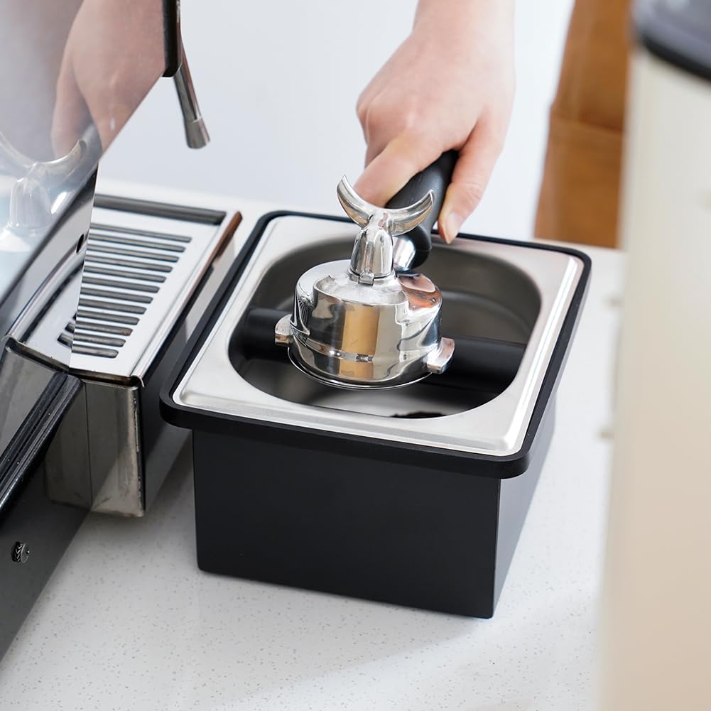 - Product Specifications: The knock box features top dimensions of 7.4 inches by 6.81 inches, a height of 4.21 inches, and bottom dimensions of 5.7 inches by 6.1 inches. This compact size makes it ideal for home kitchens, cafes, and commercial use.