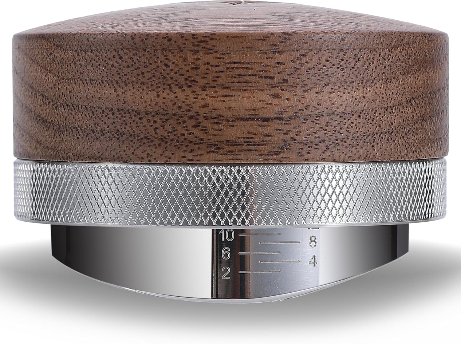 - 54mm Walnut Handle Tamper: Featuring a 30lb spring-loaded mechanism and stainless steel ripple base, this tamper ensures consistent pressure, making it ideal for perfect coffee extraction
