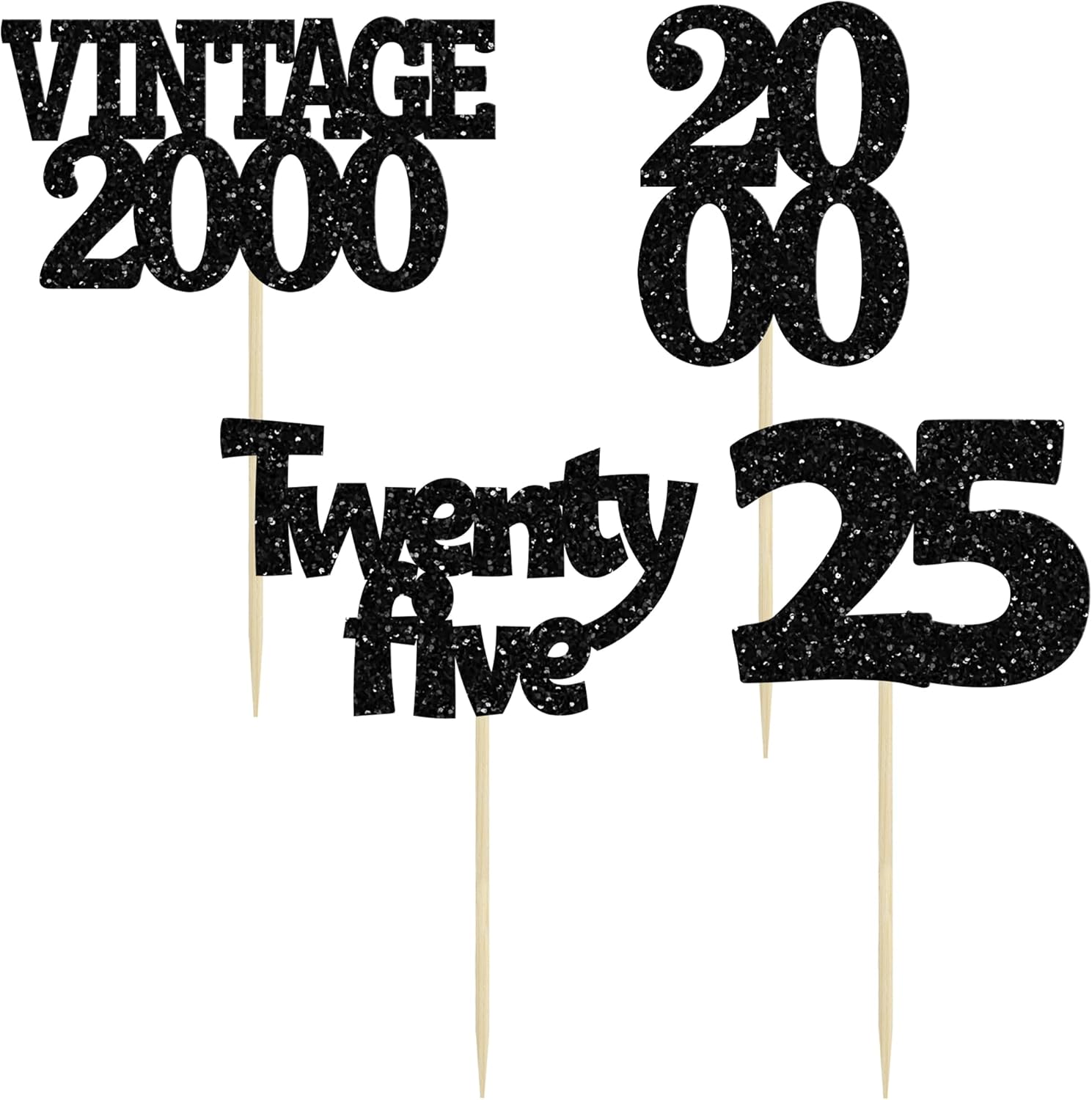 Gyufise 24Pcs 25th Birthday Cupcake Toppers Glitter Twenty-five Vintage 2000 Cheers to 25 Cupcake Picks Hello 25 Years Birthday Cake Decoration for Happy 25th Birthday Anniversary Party Supplies Black