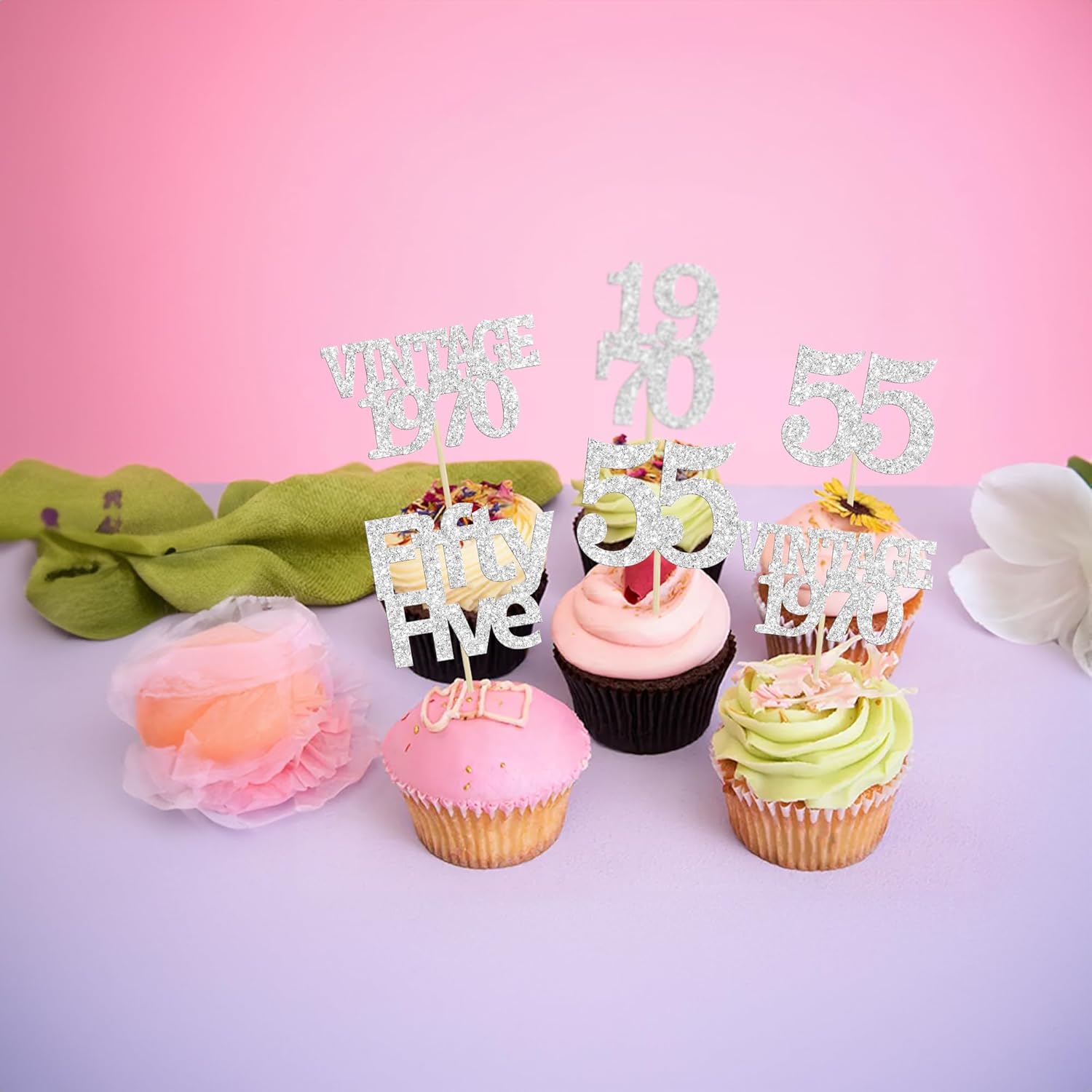 - Package included: 24Pcs 55th Birthday Cupcake Toppers. Comes with assembled, so you can insert into your cake directly, which make your cake more interesting.