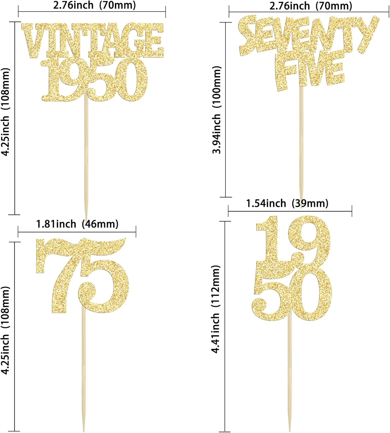 Gyufise 24Pcs 75th Birthday Cupcake Toppers Glitter Cheers to 75 Fabulous Seventy Five Vintage 1950 Cupcake Picks 75th Birthday Wedding Anniversary Party Cake Decorations Supplies Gold