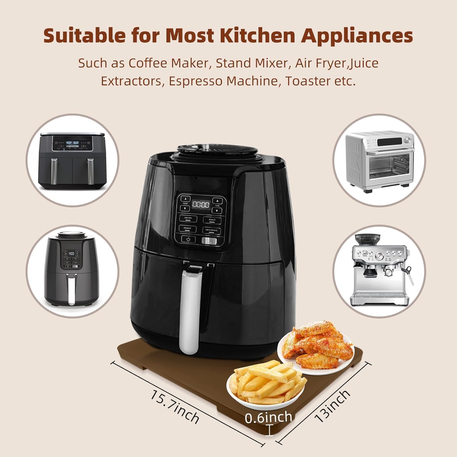 - SIZE OPTIONS: 【12.8"×15.8"】coffee maker slider tray for counter best for deeper depth double coffee makers or air fryers. Coffee maker trays for countertop suitable for Breville, Keurig K-Mini, Ninja,small coffee makers, espresso machines, air fryers, toasters and stand mixers.