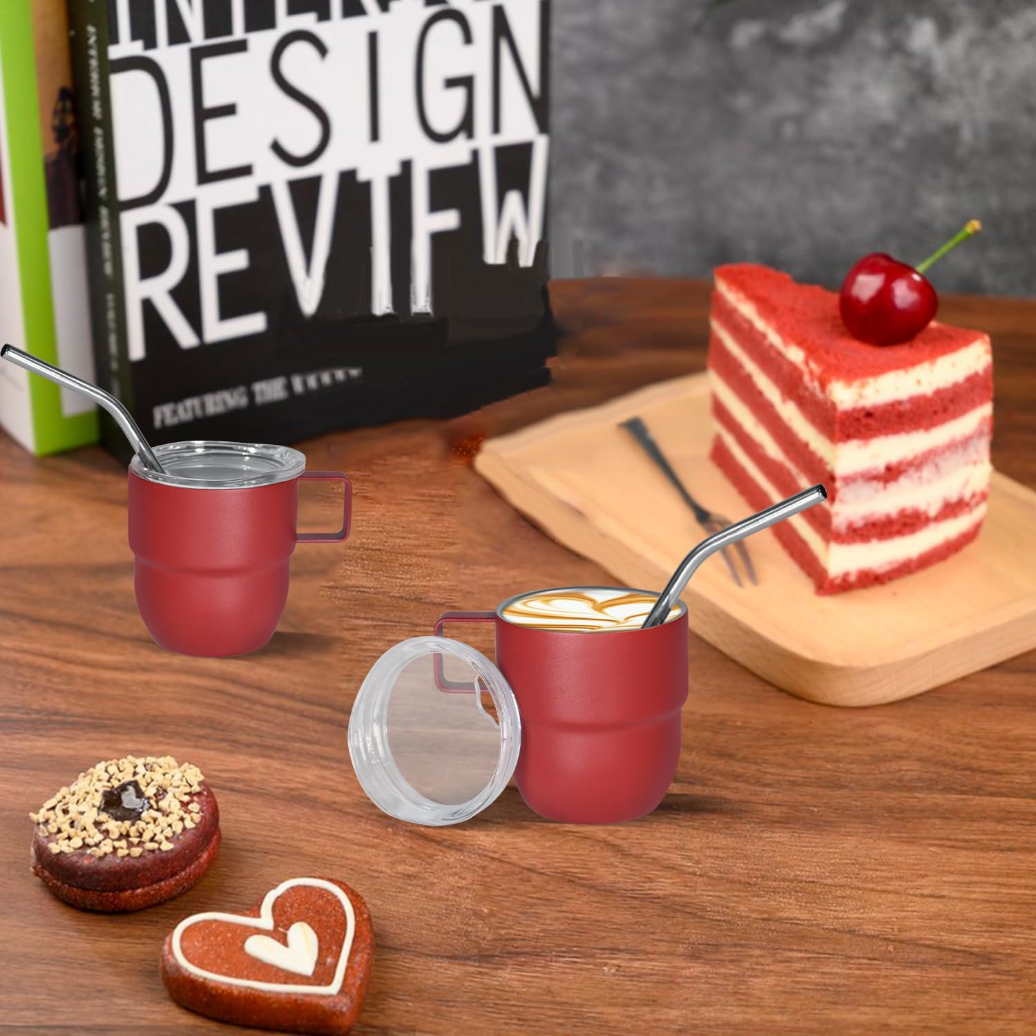4oz Stackable Cup, Vacuum Insulated Espresso Cup Set of 2, Espresso Mug for Coffee, Double Wall Stainless Steel Mini Tumbler Shot Glasses with Straw and Lid