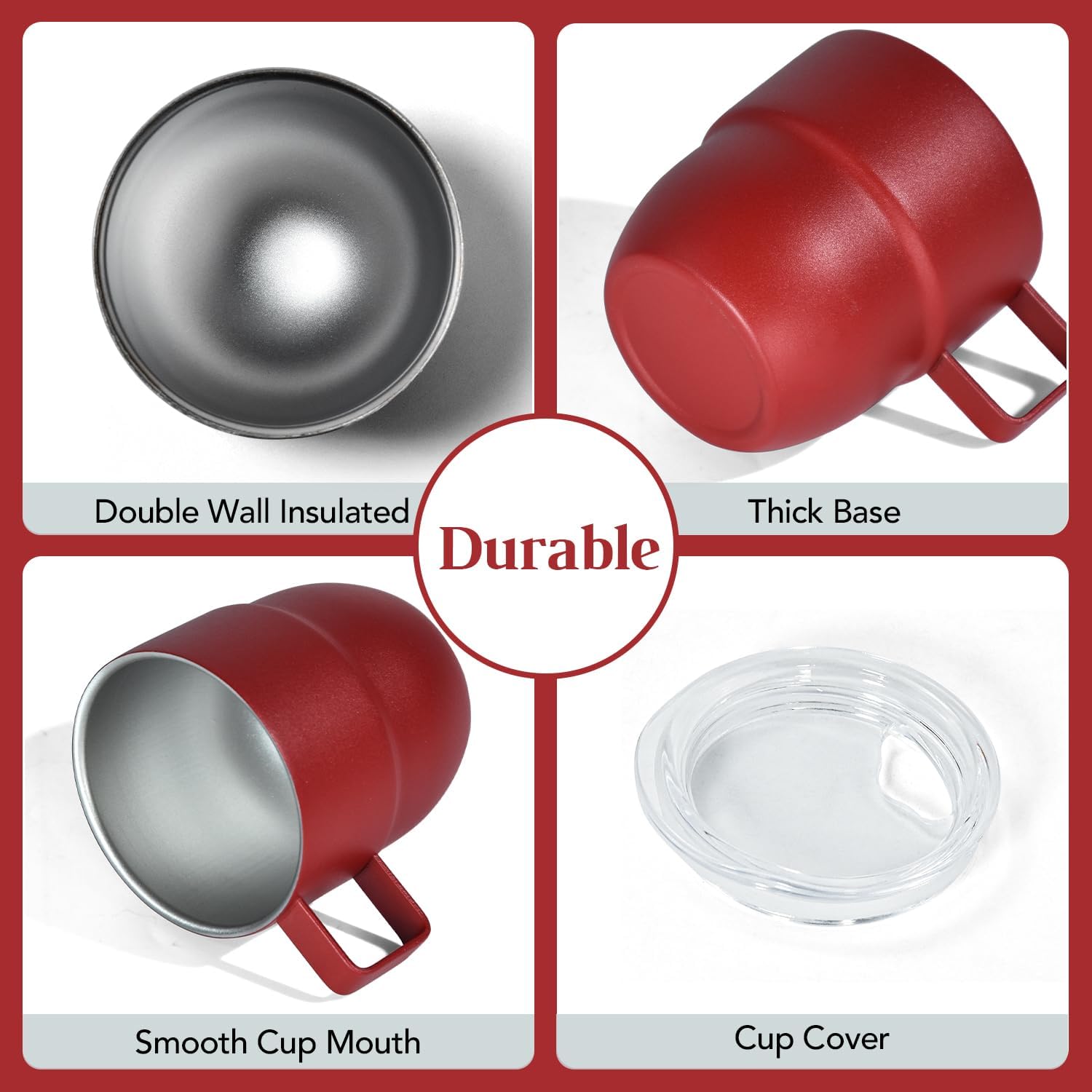 - DOUBLE WALL STAINLESS STEEL: Our espresso cups are made from double wall 18/8 stainless steel, vacuum insulated. Compared to ceramic lining, stainless steel lining are more durable, anti-scald, odourless, not break easily, and better at retaining hot or cold. Whether it's a hot coffee or an iced coke, this small cup is up to the task!