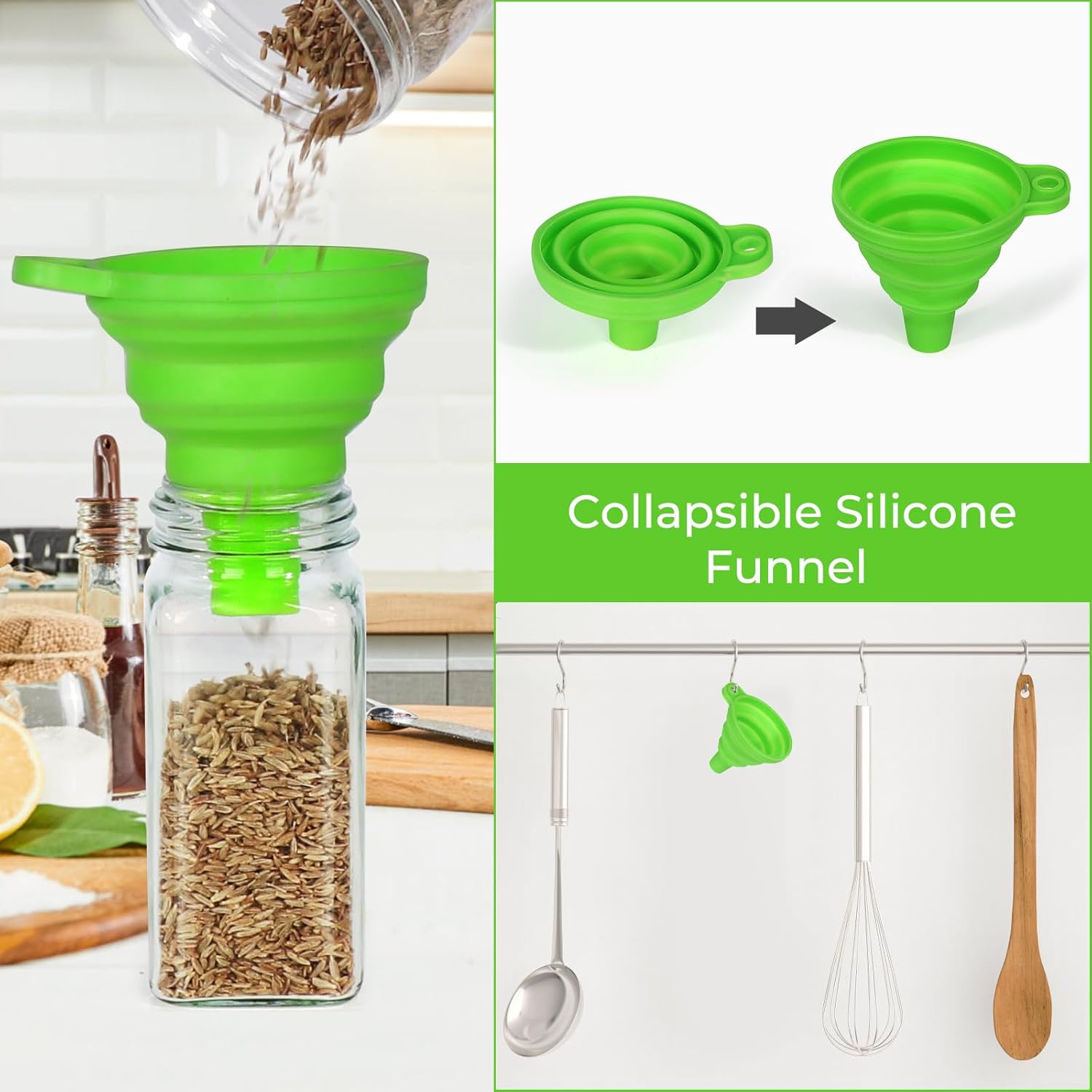 - BLANK SPICE JAR LABELS AND FUNNEL : 240 Printed Labels + 40 Blank Black labels for Spice Jar and reusable for you to fill in with a chalk Marker and wipe clean as needed! The Silicone Collapsible funnel specially designed for spice makes it easier to add new spices to your empty spice bottles