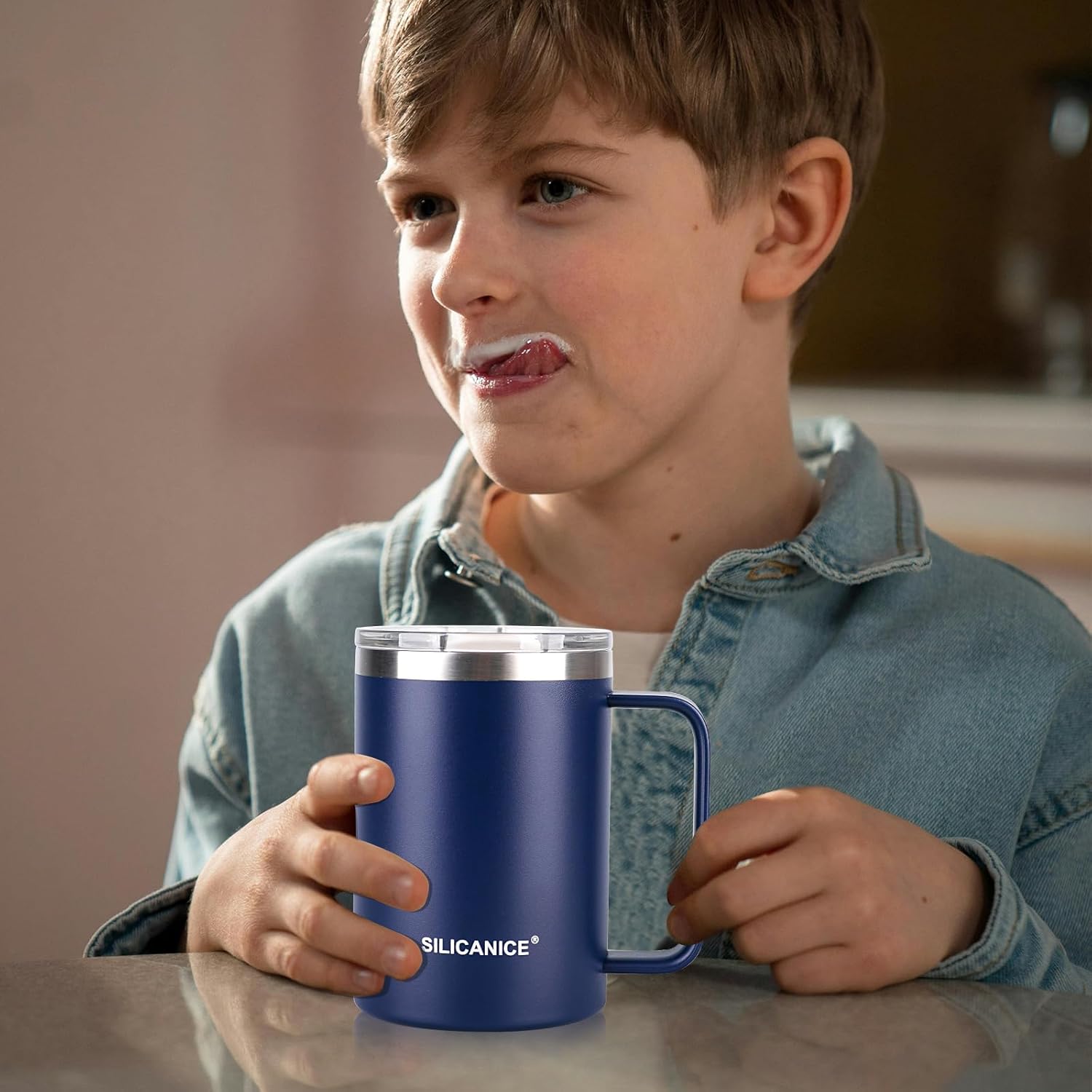 14 oz Stainless Steel Vacuum Insulated Tumbler with handle & MacSlider Lid, Dishwasher Safe & Spill Proof Coffee Cup, Travel Mug for Hot/Cold Drinks, Durable Design - Navy