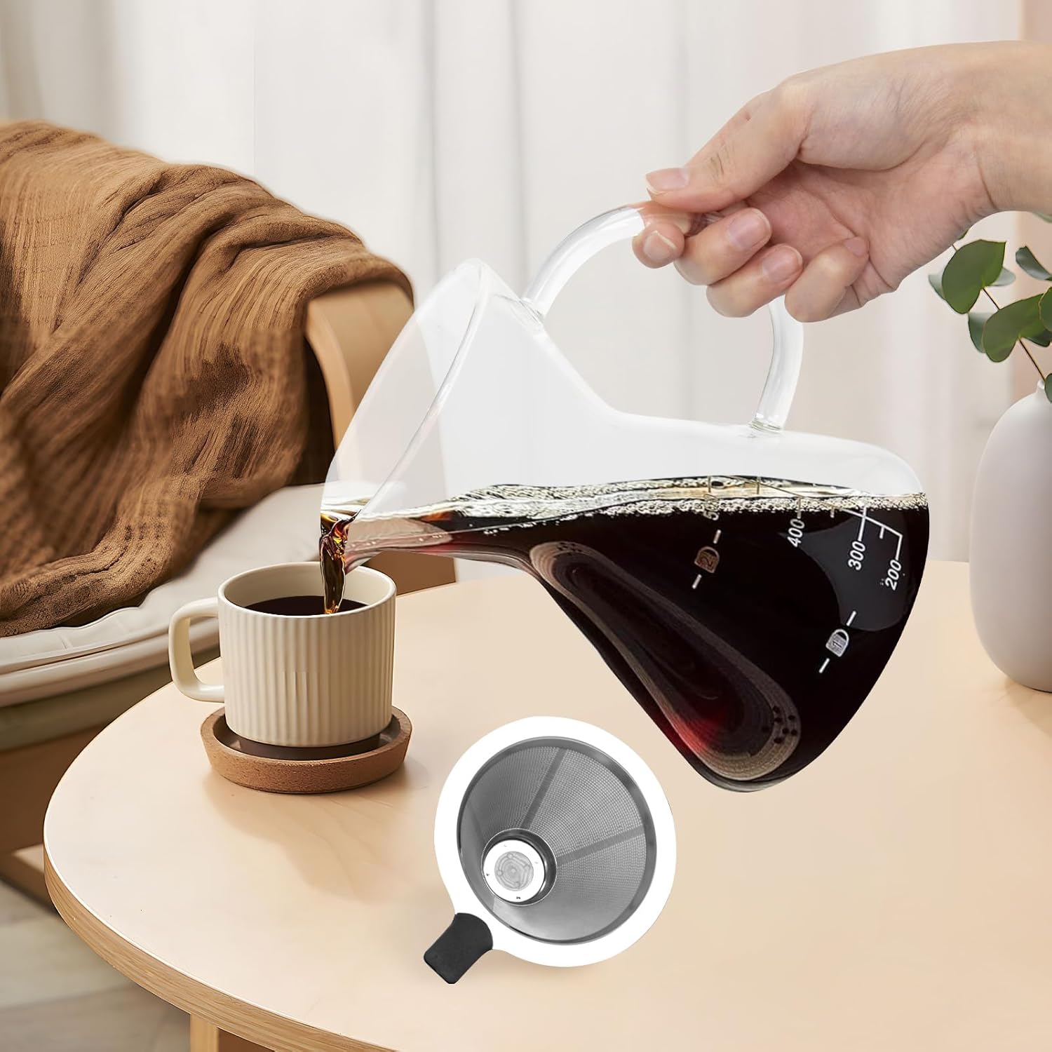 - Elegant Design for Any Setting: Whether at home, in a café, or at the office, this sleek elegant pour over coffee maker glass complements any environment while simplifying the brewing process. Experience the joy of a leisurely coffee ritual and indulge in the delightful taste of perfectly extracted coffee each time.