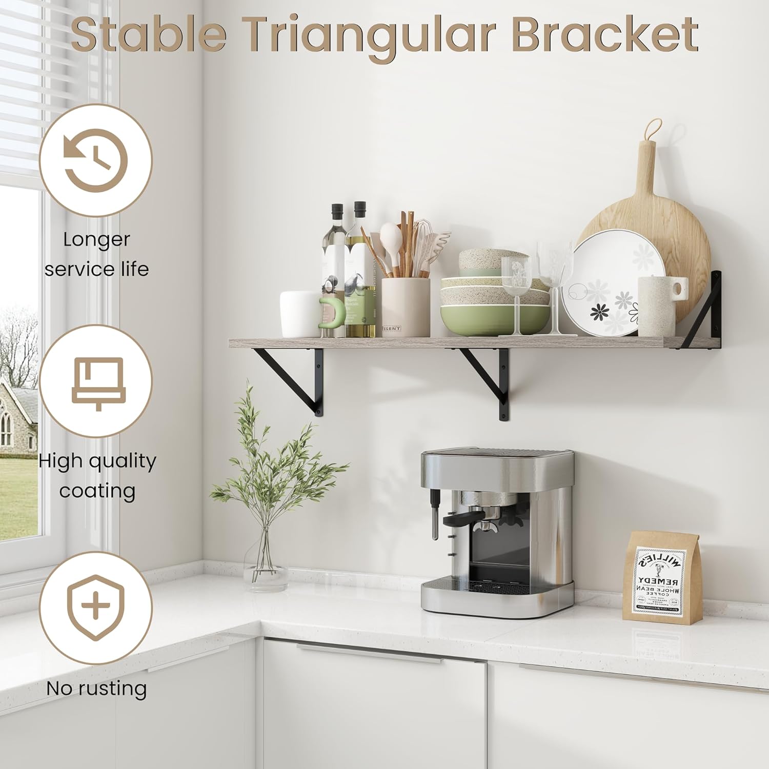 - Large Floating Shelves: Our versatile rustic wall shelves measure 36&12 inch floating shelves, offering generous storage or display space for any room in your home—be it the kitchen, living room, bedroom, bathroom, laundry room, and so on. With ample surface area, you can easily store or display items like books, collectibles, plants, crafts, photos, laundry supplies, and more.