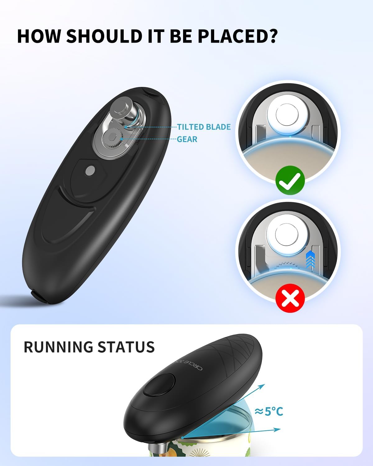 - Smooth & Safe Cutting - No more jagged, dangerous lids! This automatic can opener features a side-cutting mechanism that cleanly cuts the can lid without sharp edges, preventing injuries, it is a good helper for arthritis sufferers and those with limited hand strength.
