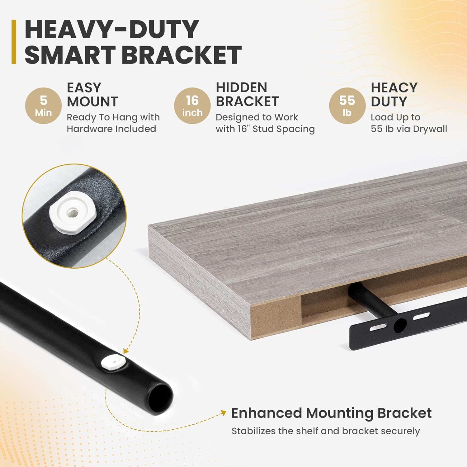 - [ROBUST & SECURE MOUNTING]: Equipped with a sturdy, hidden mounting bracket, these 30-inch floating shelves ensure solid support for your items. Designed for easy and secure installation, they come with all necessary hardware for a firm, wobble-free setup, allowing you to confidently display decor, photos, or functional items with style.