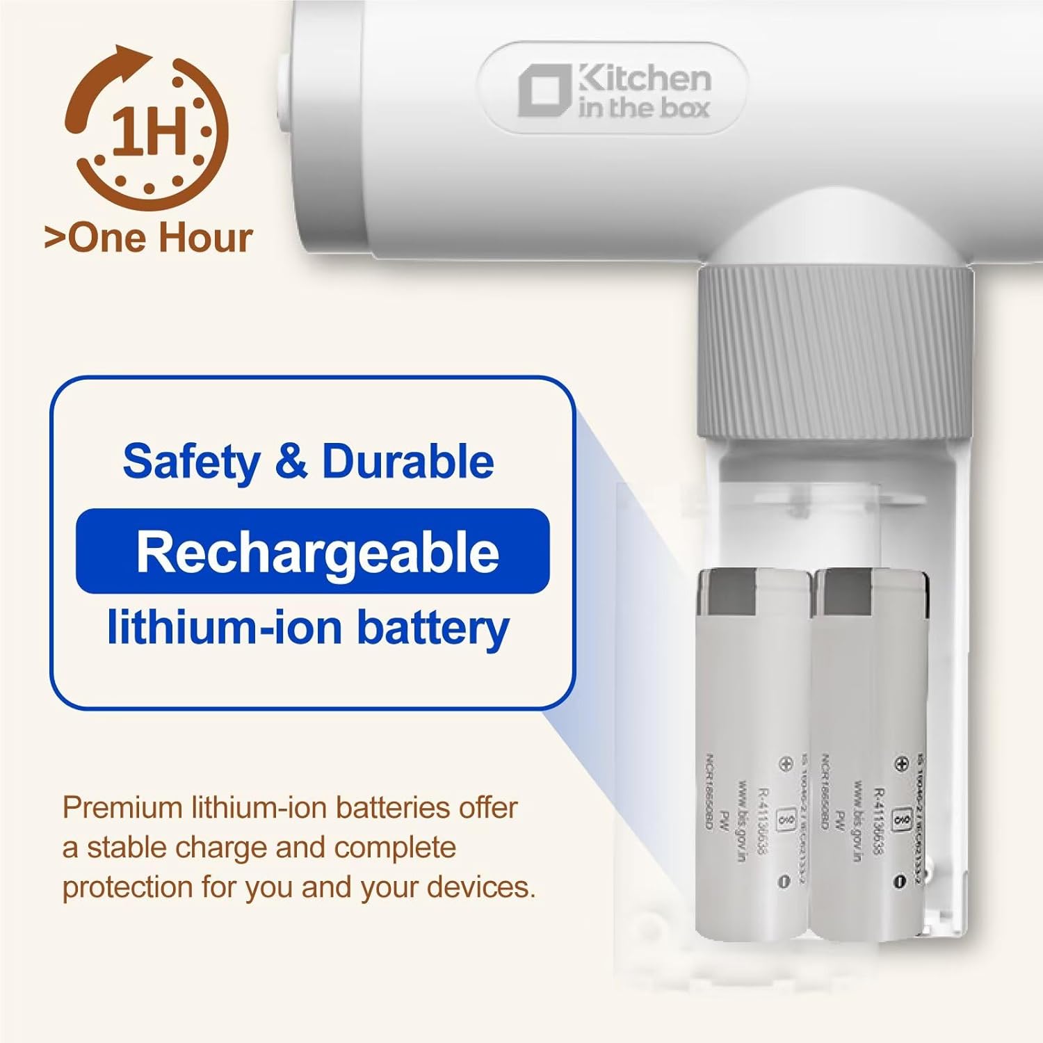 - Safe & Durable Battery - Our compact cordless mixer for baking equipped with high quality lithium-ion battery, providing stable charging and comprehensive protection for you and your device. Large-capacity battery can be used for more than 1 hour on a full charge