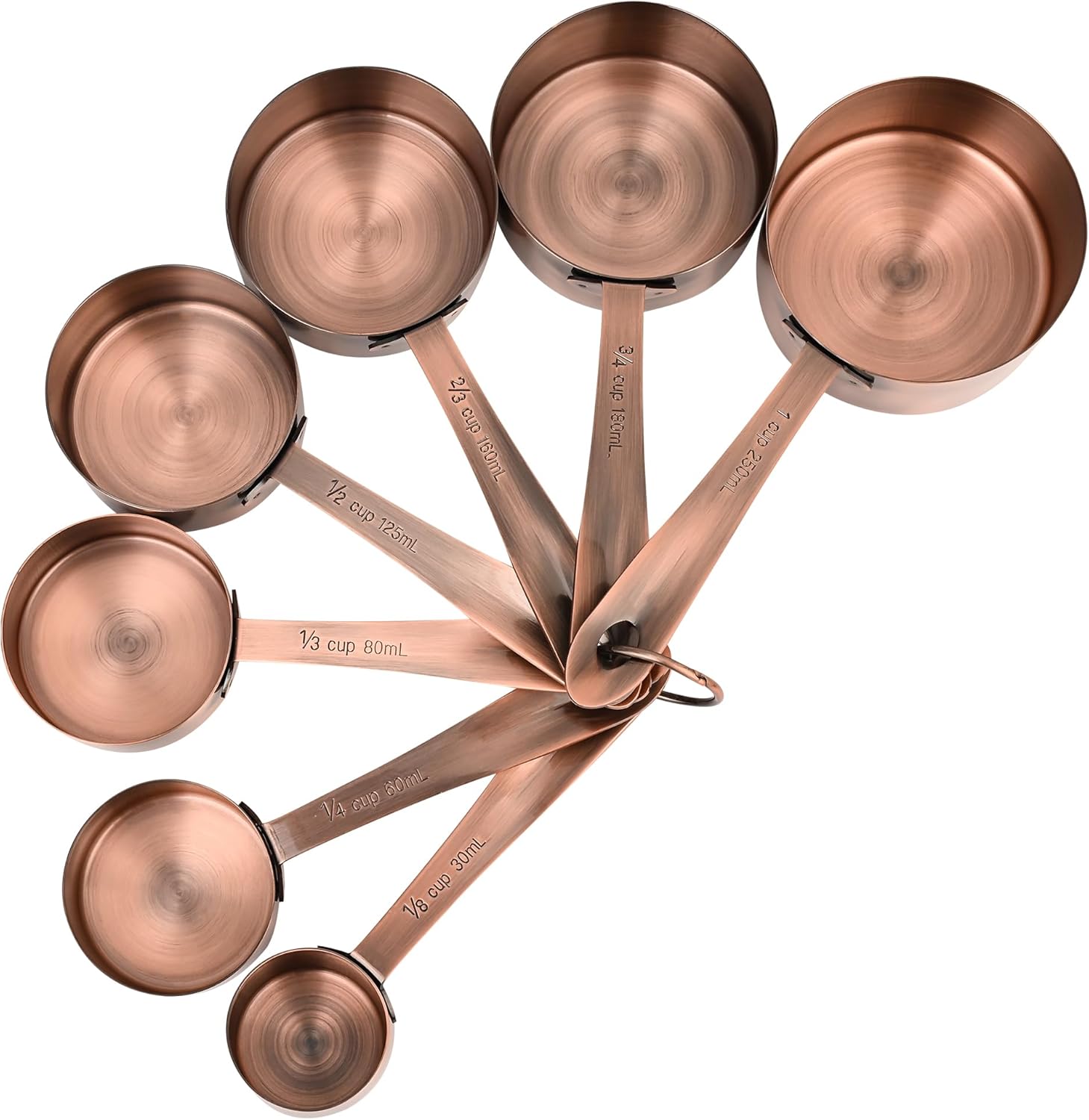 - ✱✱ Every stainless steel copper plated measuring cups and spoons set: this set has the accurate measurements size in US and Metric engraved on the handle clearly, what will help you reduce any measuring errors for cooking or baking! for dry measuring cups and liquid measuring cups in kitchen!