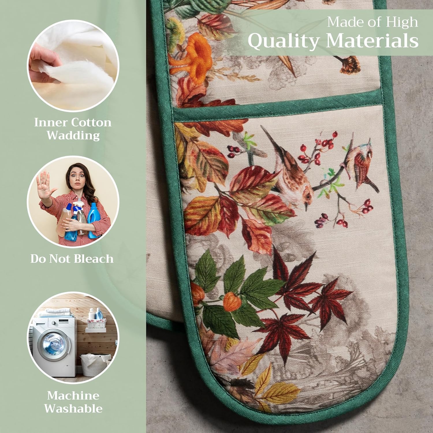 - 100% Quilted cotton: Crafted from premium quilted cotton for superior heat resistance and durability. This double oven mitt offers a soft, flexible grip and protects your hands during baking, roasting, or grilling