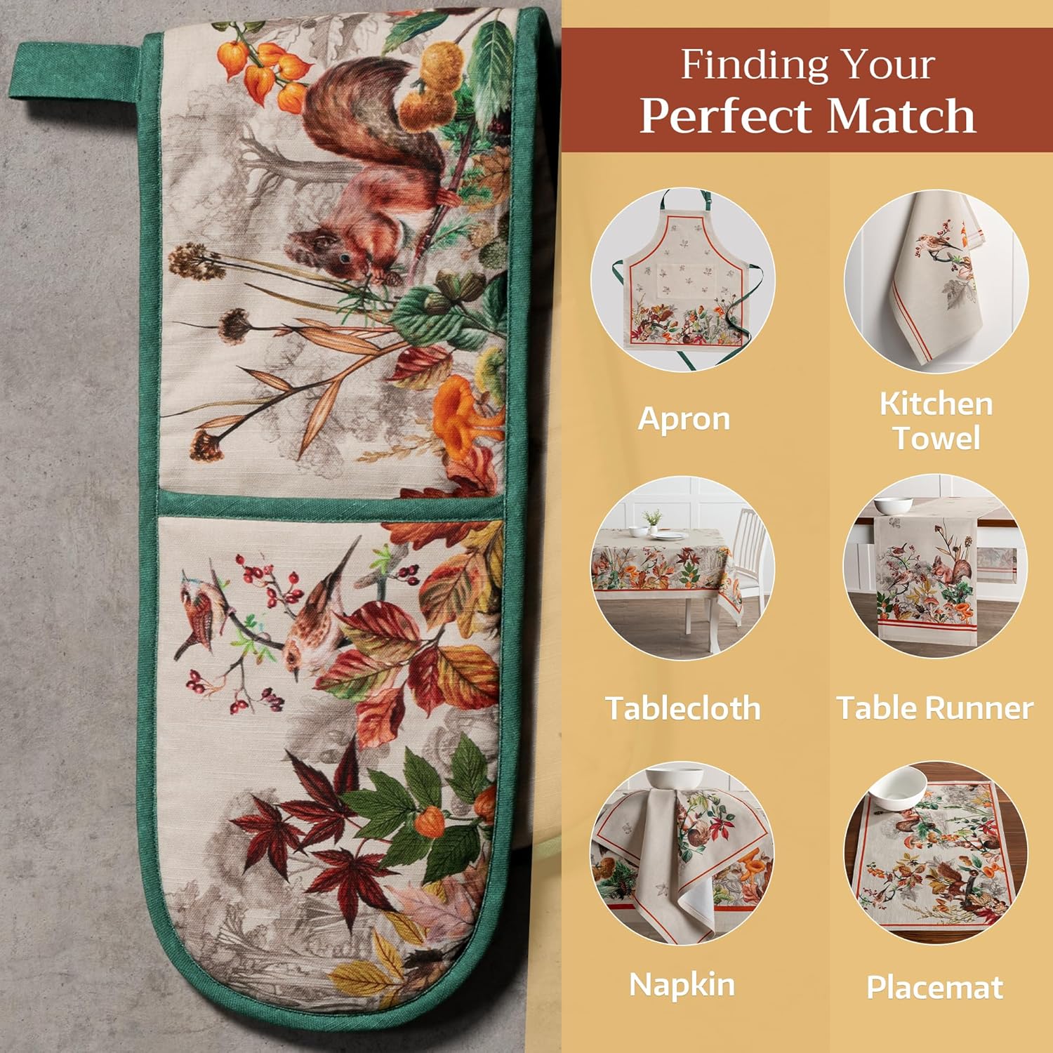 Maison d' Hermine Double Oven Mitts 100% Cotton 7"x35" Double Oven Mitt Heat Resistant BBQ Cooking Gloves with Loop, Baking, Grilling, Home, Kitchen, Handling Hot Pans (Recolte)