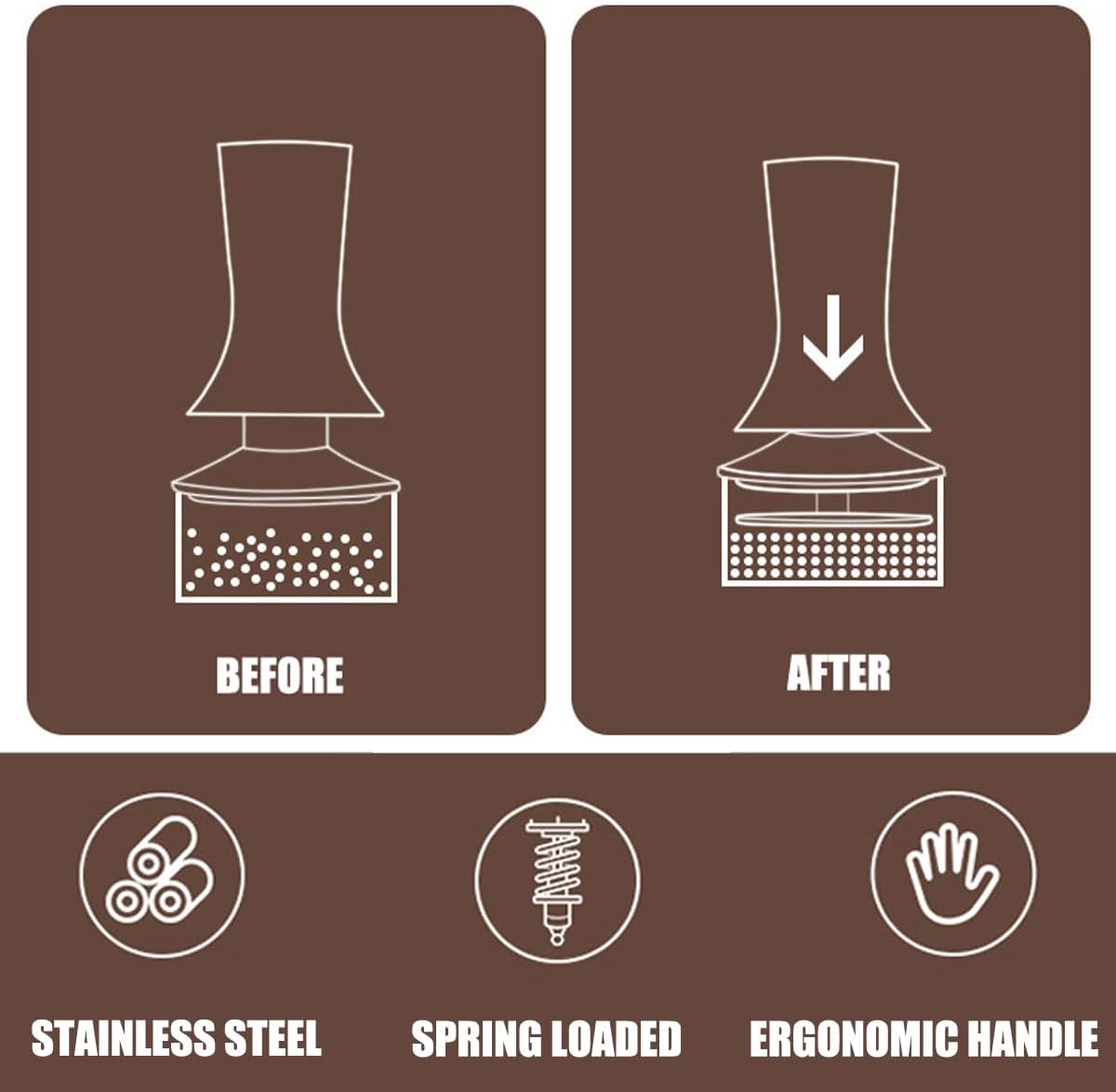 - 【ERGONOMIC HANDLE】 The tamper features a non-slip grip for comfortable and secure handling. Our espresso tamper set have been improved and upgraded with an eye-catching depth marking scale, making it easy for even novice coffee mashers to set the optimal coffee extraction depth.