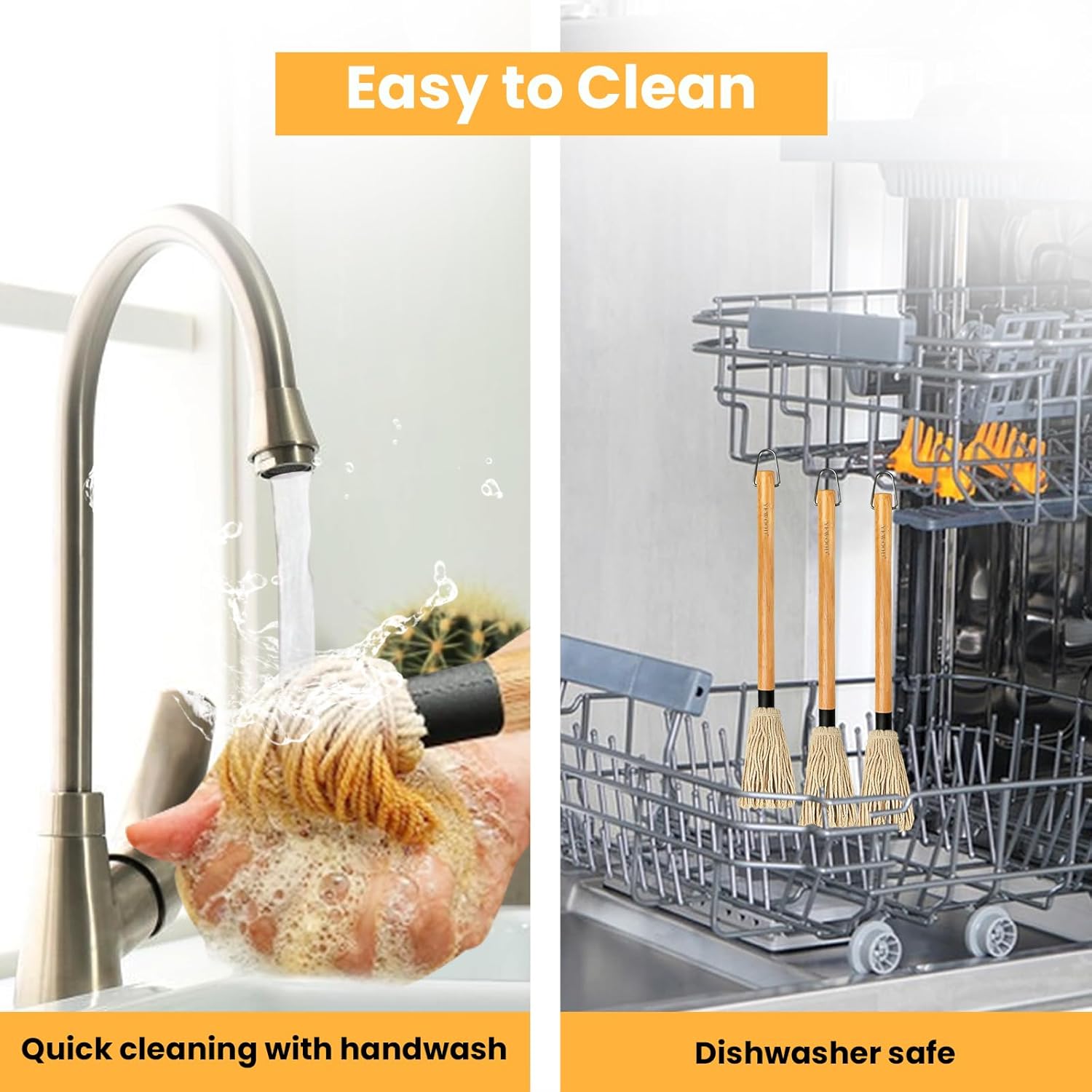 - Wide Applications:The mop is perfect for slashing different sauces for basting and glazing a variety of meats and poultry. It can also be used as a kitchen clean-up brush, the extra long handle makes it easy to reach bottom of cups, glass bottles and surface of the stove.