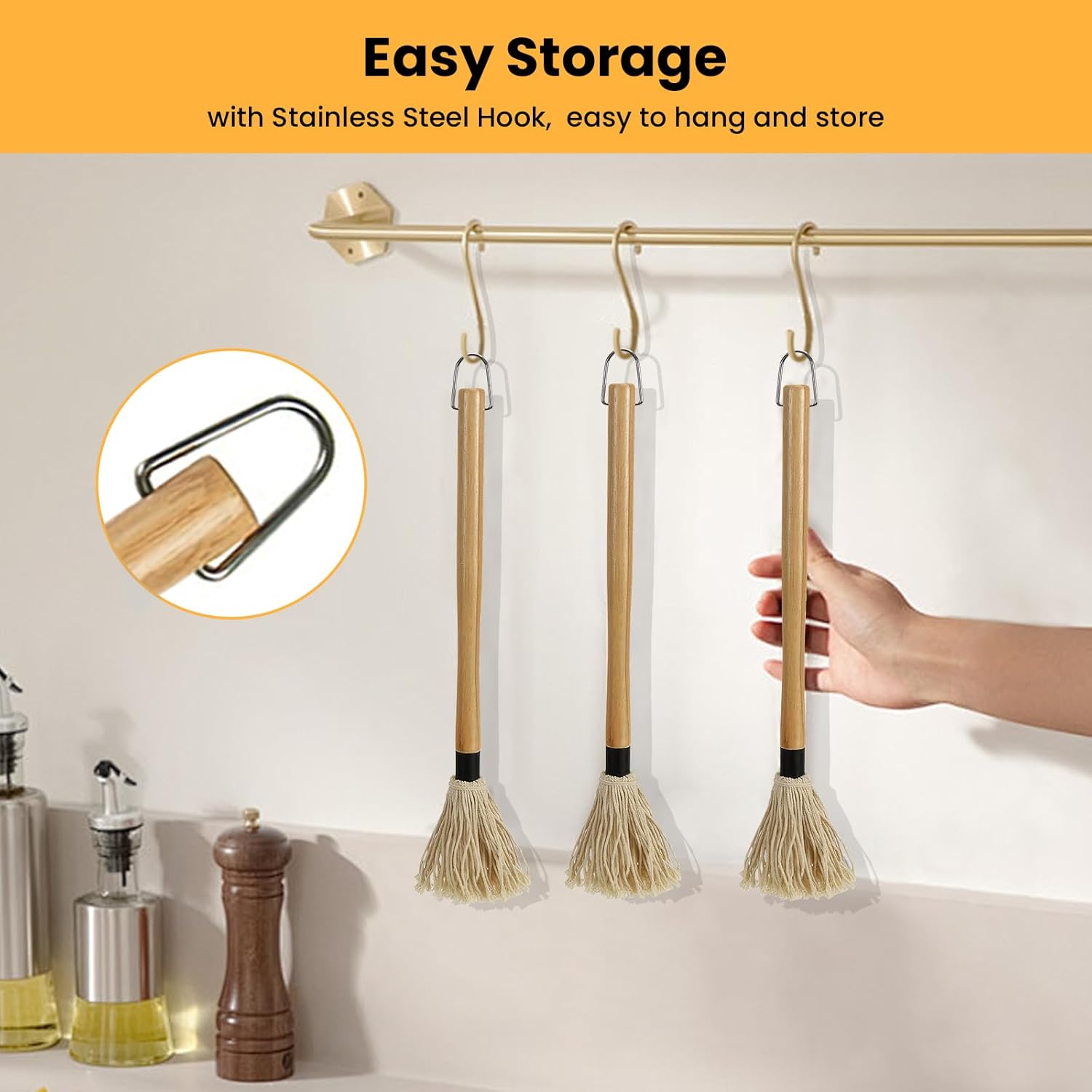 - Unique Design: The mop brush is designed with a wood grip and 6 replaceable heads. 18” + 14" long brush effectively protect your hands from scalds during grilling. The top of the wood grip is equipped with a hanging hook which is convenient to store.