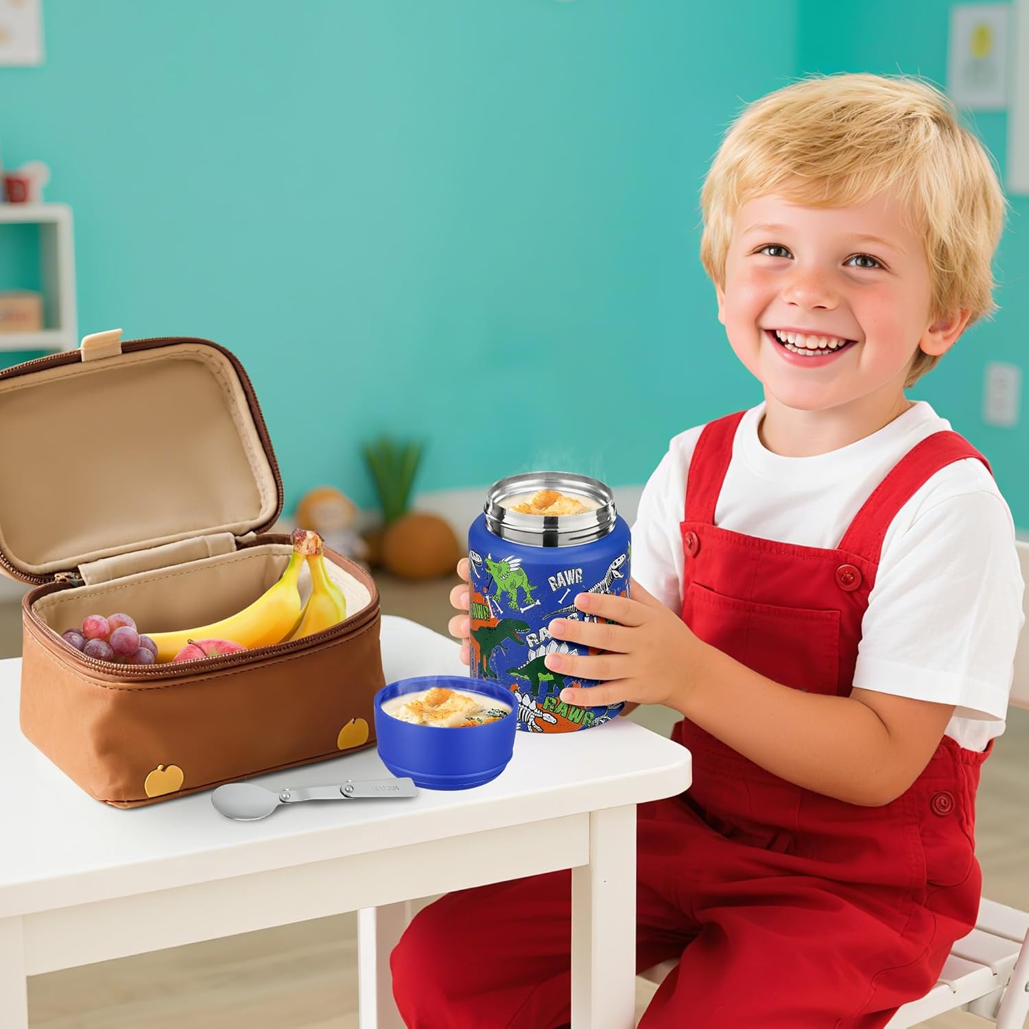 - FOOD-GRADE SAFETY & CPC CERTIFIED - The inside of kids thermo food container is made of high quality 316 stainless steel. Fully compliant with CPC standards to ensure child safe material. Double-layer vacuum insulation design, open lid venting for safe steam release. Durable, care for children's health.