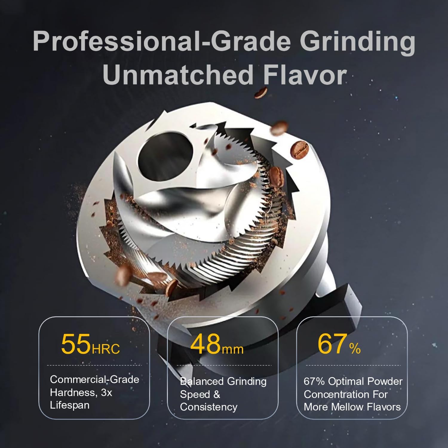 - ANTI-CLOGGING PATENT:Our burr coffee grinder has an anti-clogging patent that optimizes the powder channel smooth slow based on the 3rd generation electric coffee grinder, discharging 100% of the powder. The food-grade anti-static coating can achieve less than 0.2% debris residue, keeping you out of mess.
