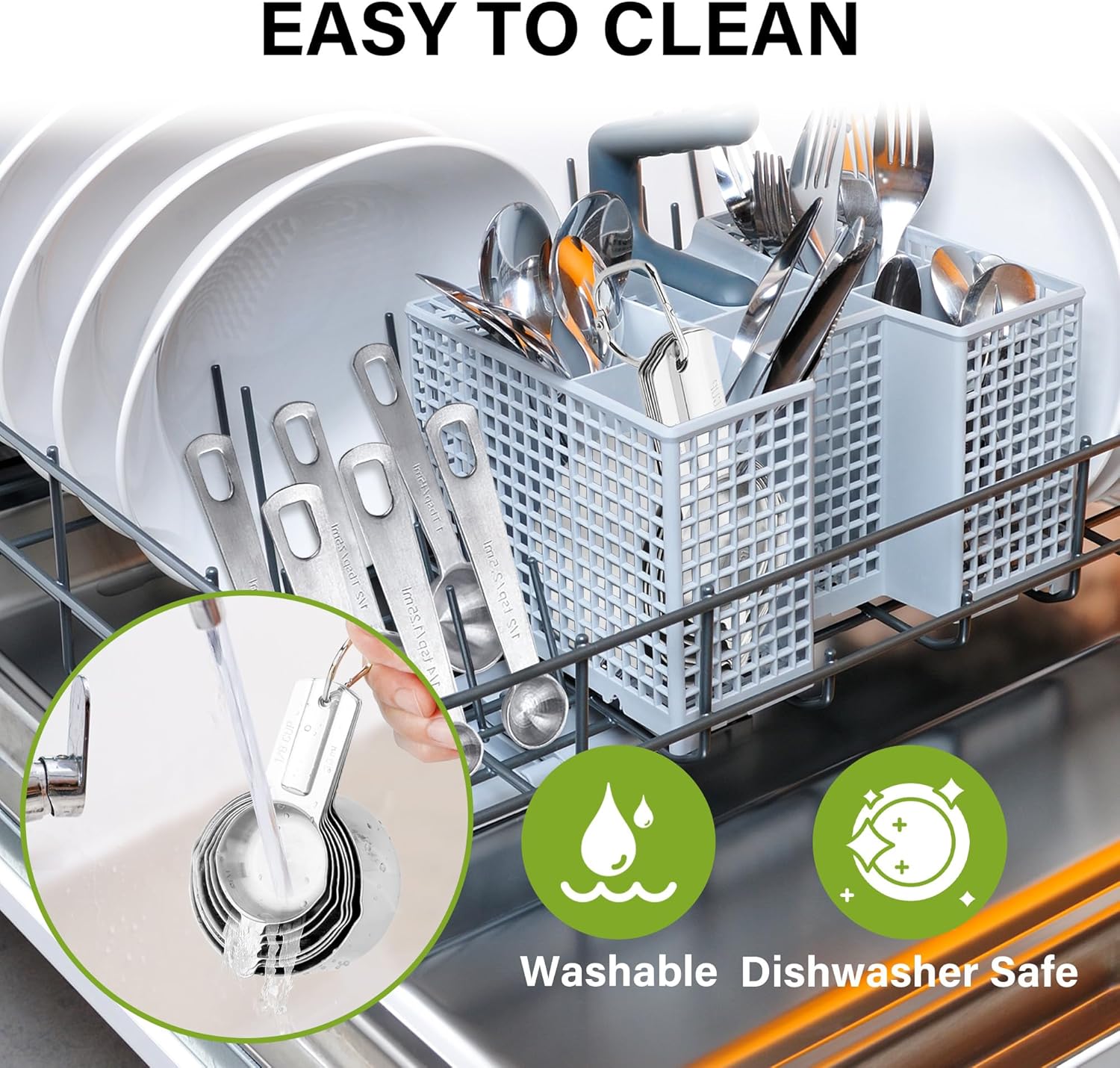 - Dual Measurement Markings for Precision: Each measuring spoons and measuring cups features laser-etched U.S. (cup/tsp/tbsp) and metric (ml) markings. These permanent, easy-to-read engravings ensure precise measurements for all your cooking and baking needs.